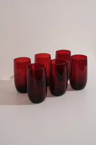 Vintage 70s Ruby Red Mold-Blown Tumbler Glasses (Set of 8)