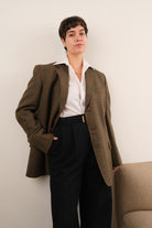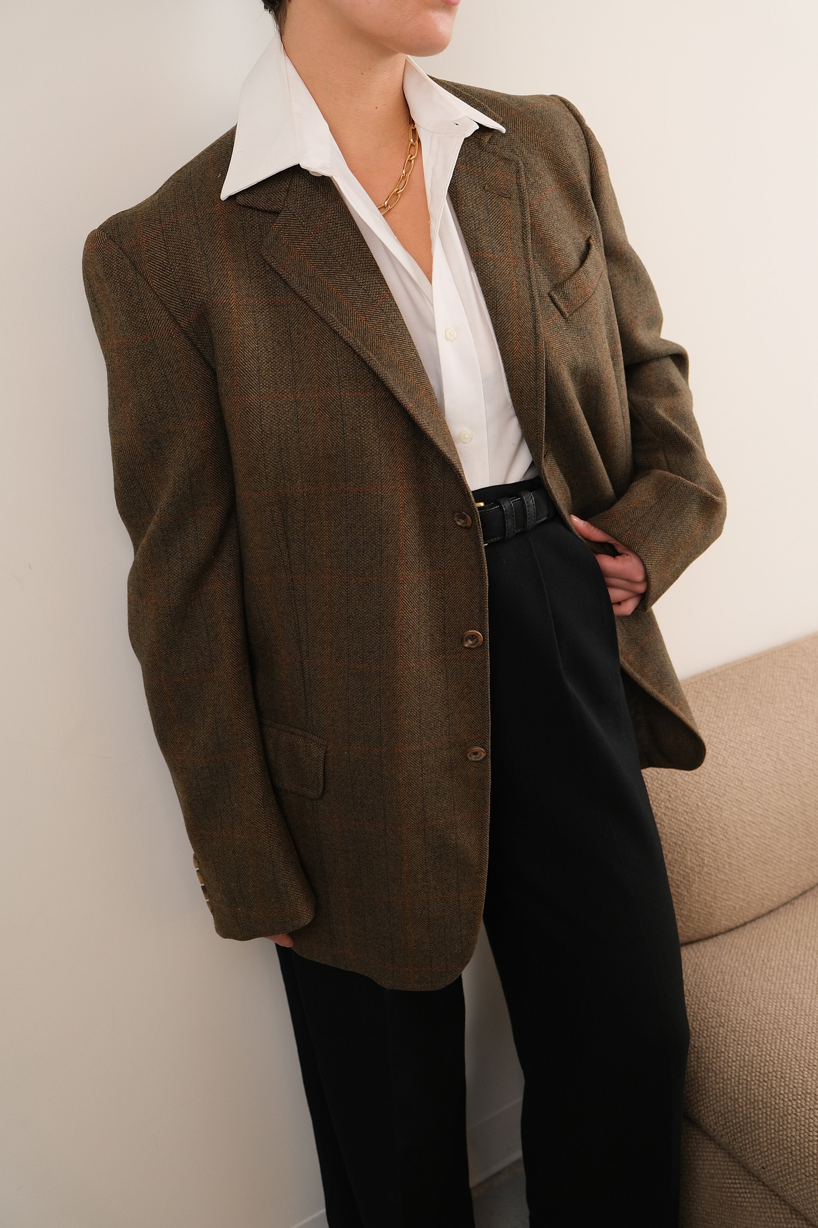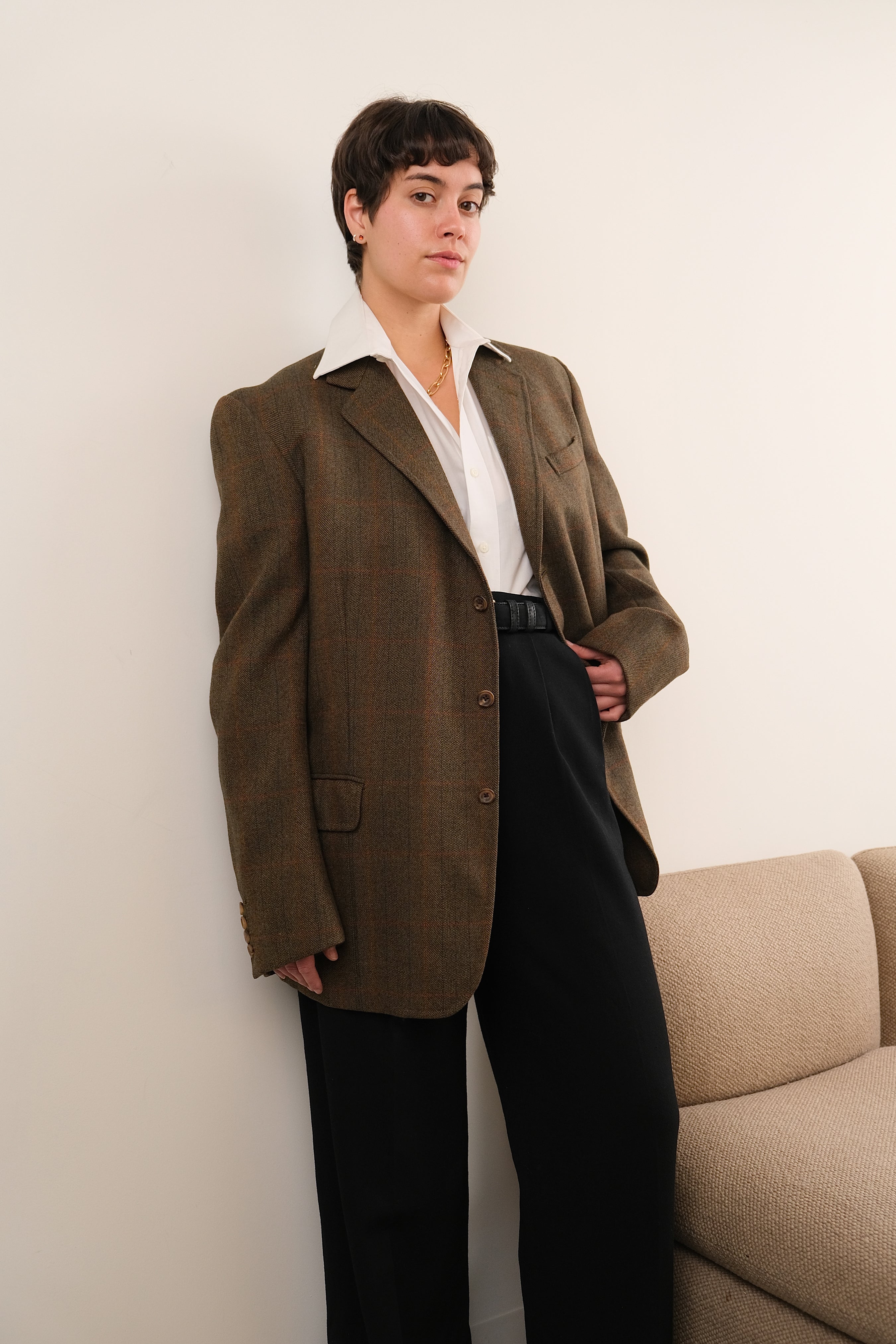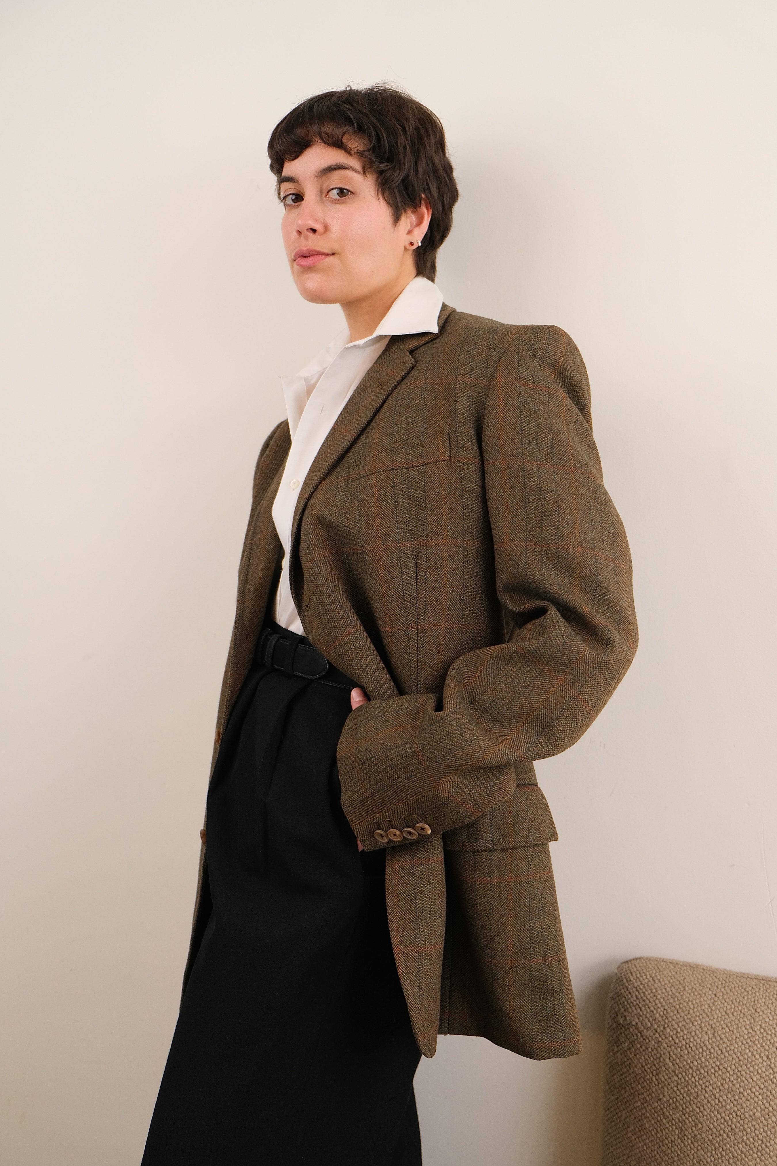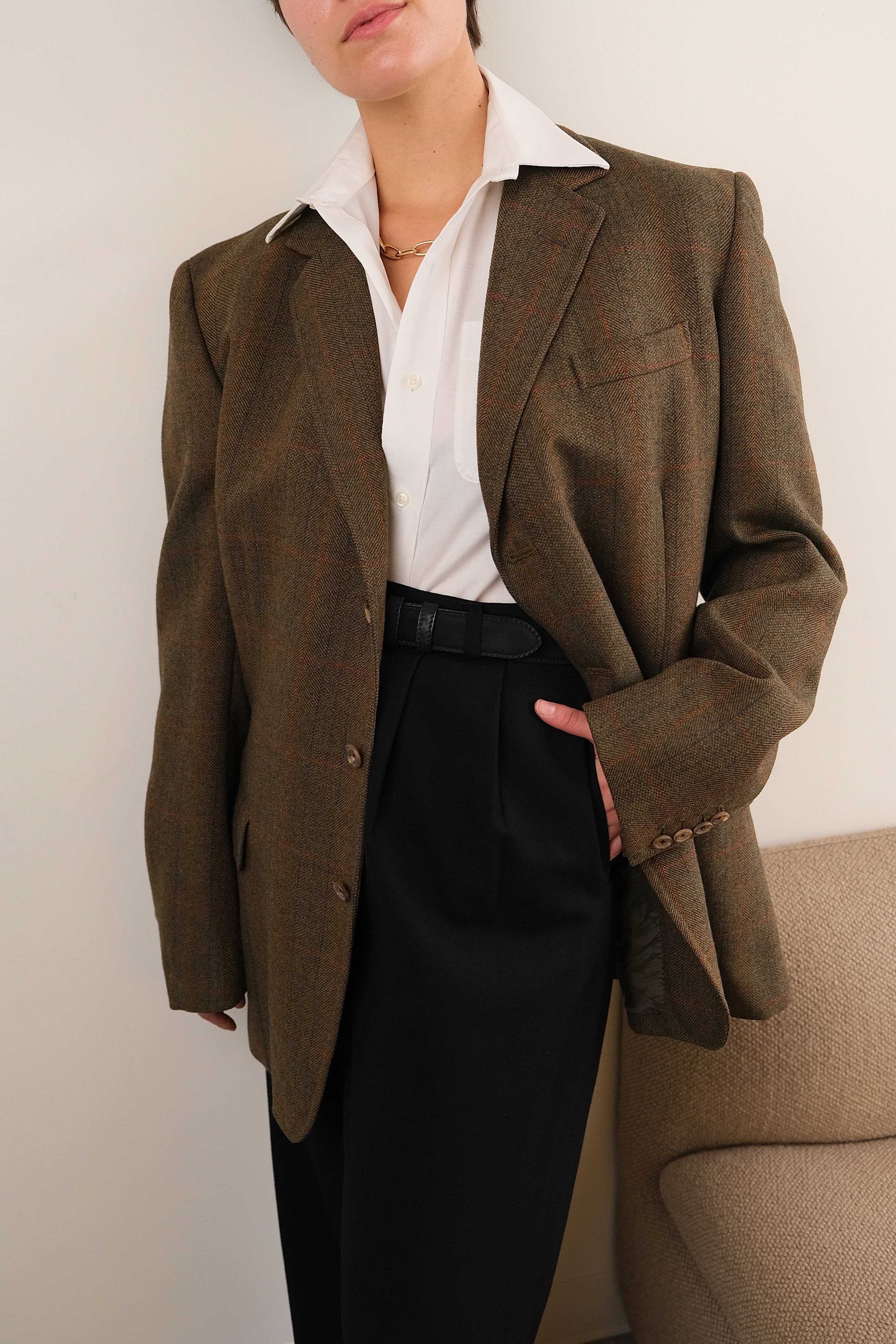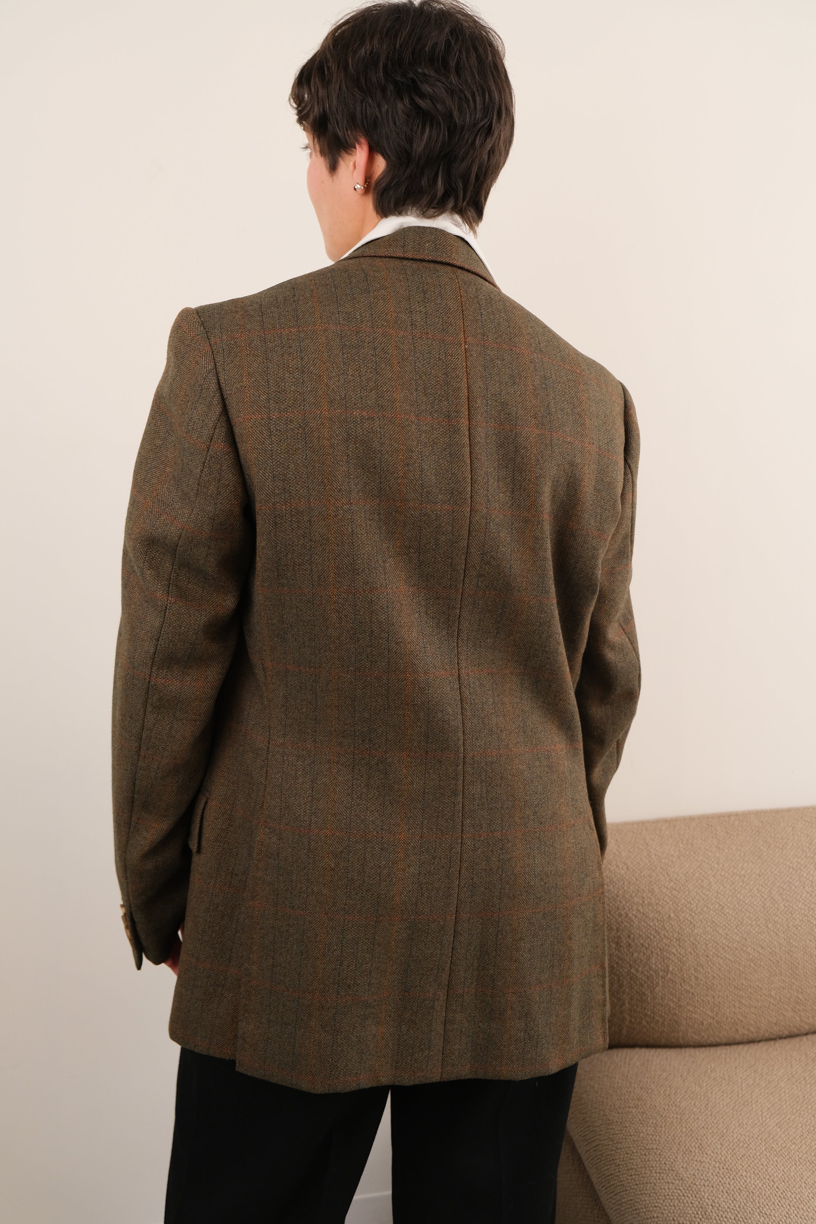 Vintage 70s Irish Chestnut Wool Windowpane Blazer