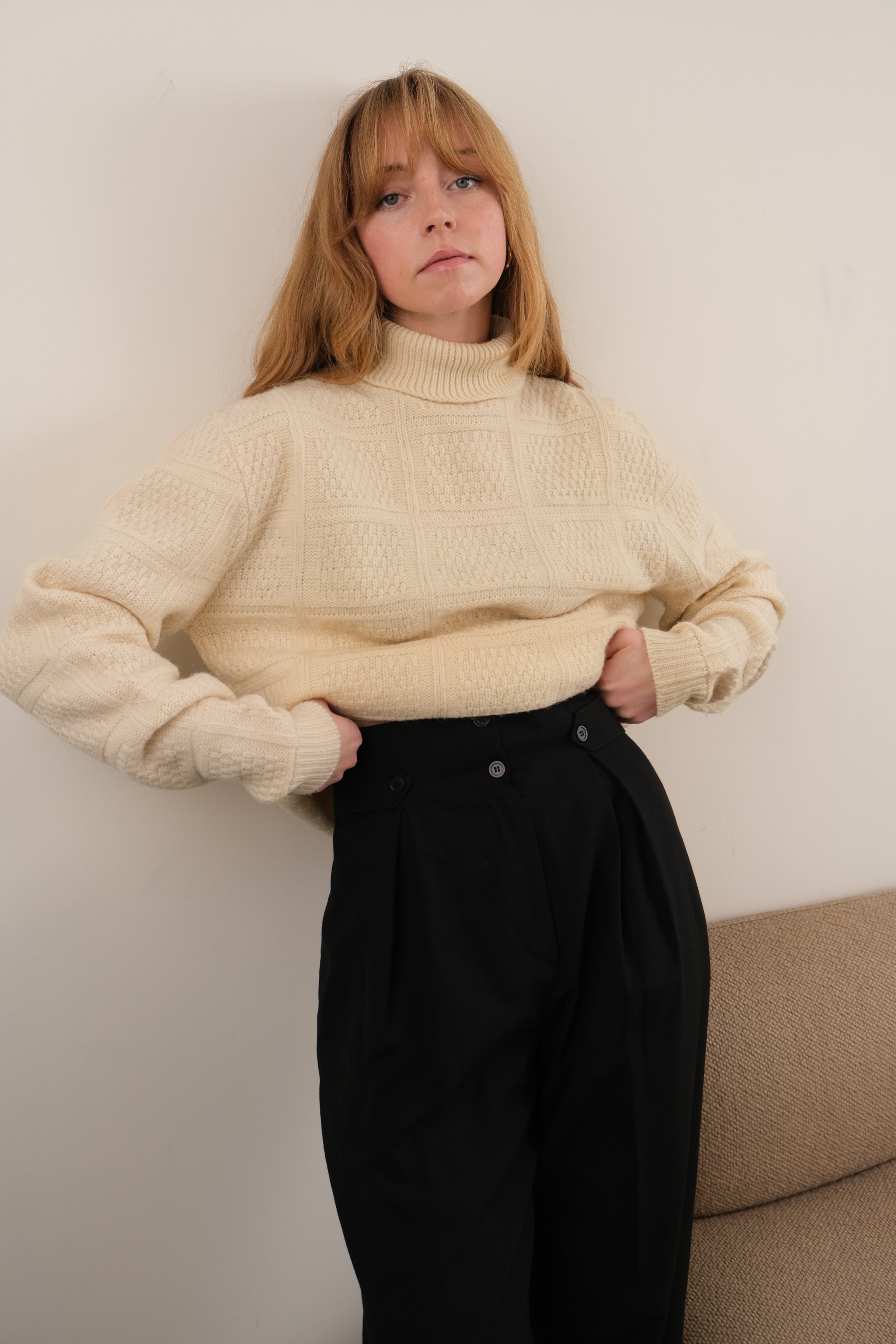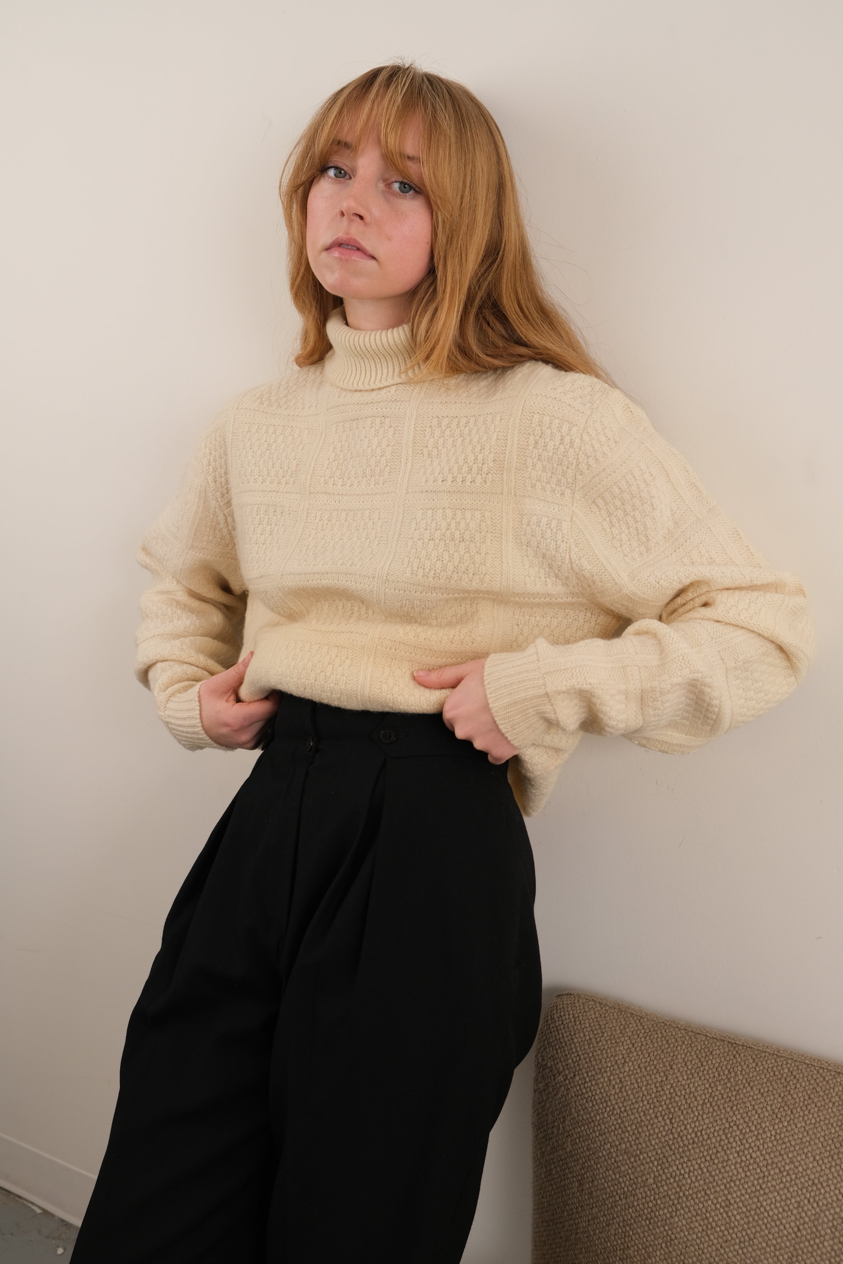 Vintage 80s Alabaster Wool Turtleneck Sweater