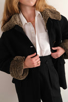 Vintage 80s Charcoal Wool Blend Shearling Collar Coat