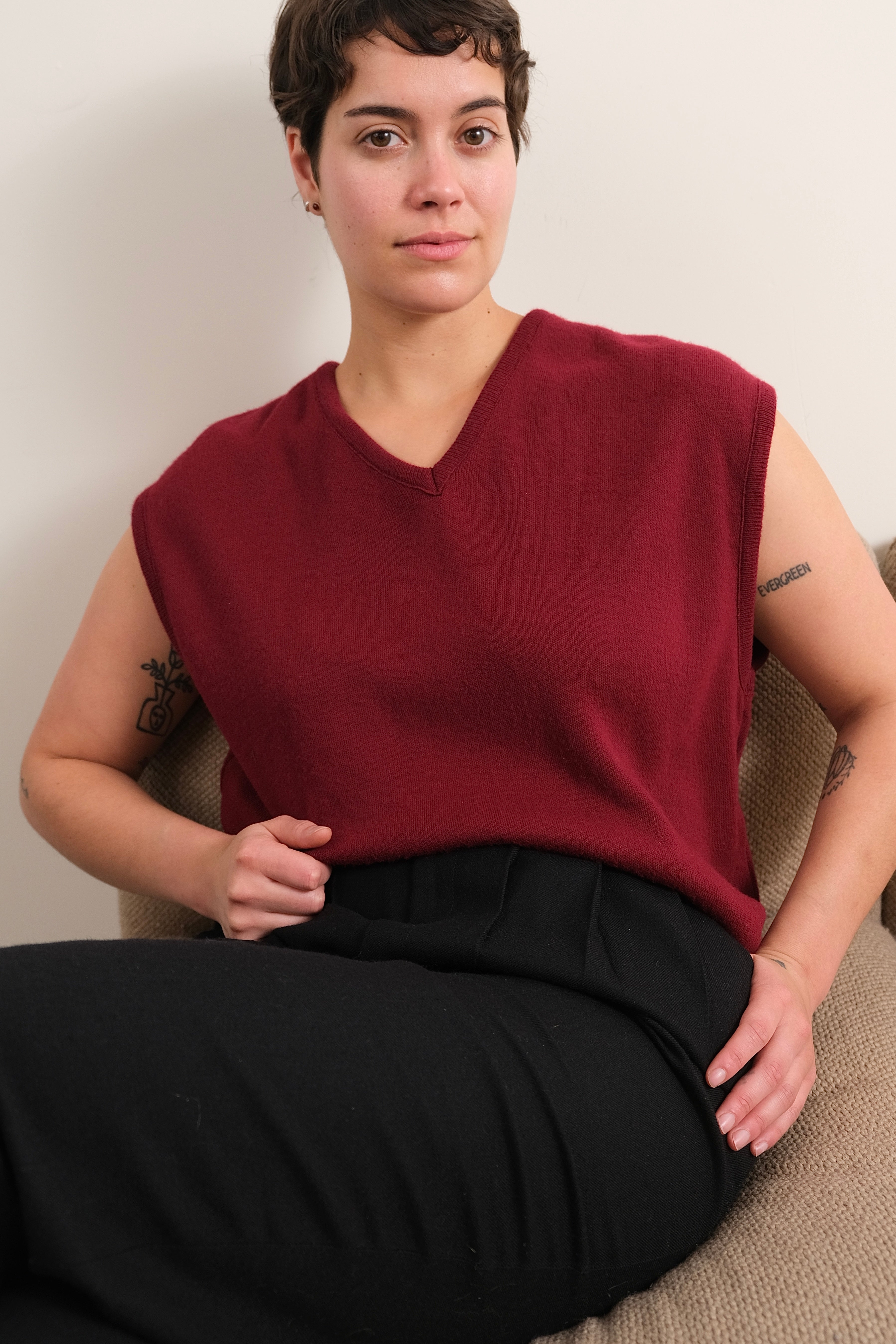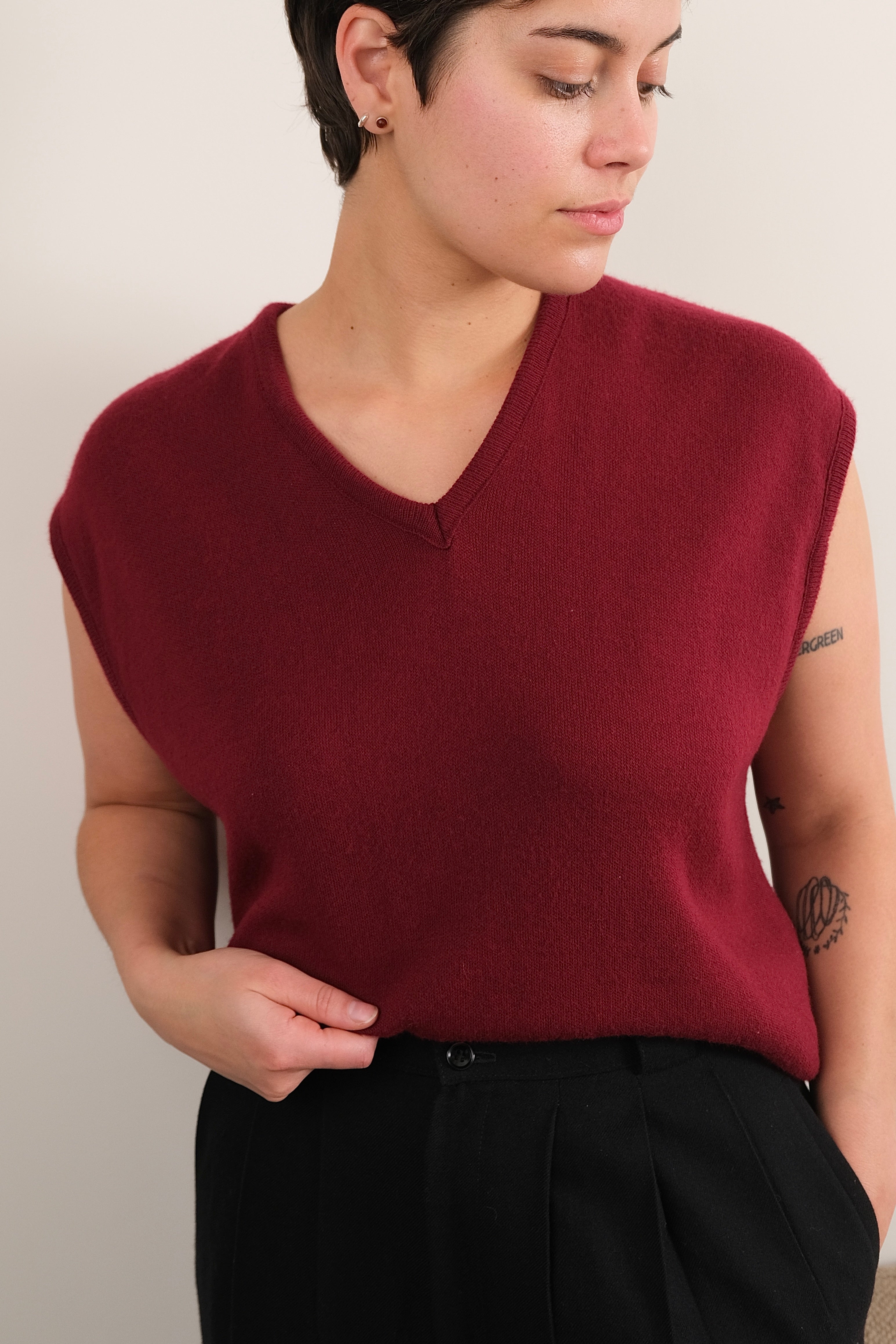 Vintage 80s Merlot Wool Blend V-Neck Sweater Vest