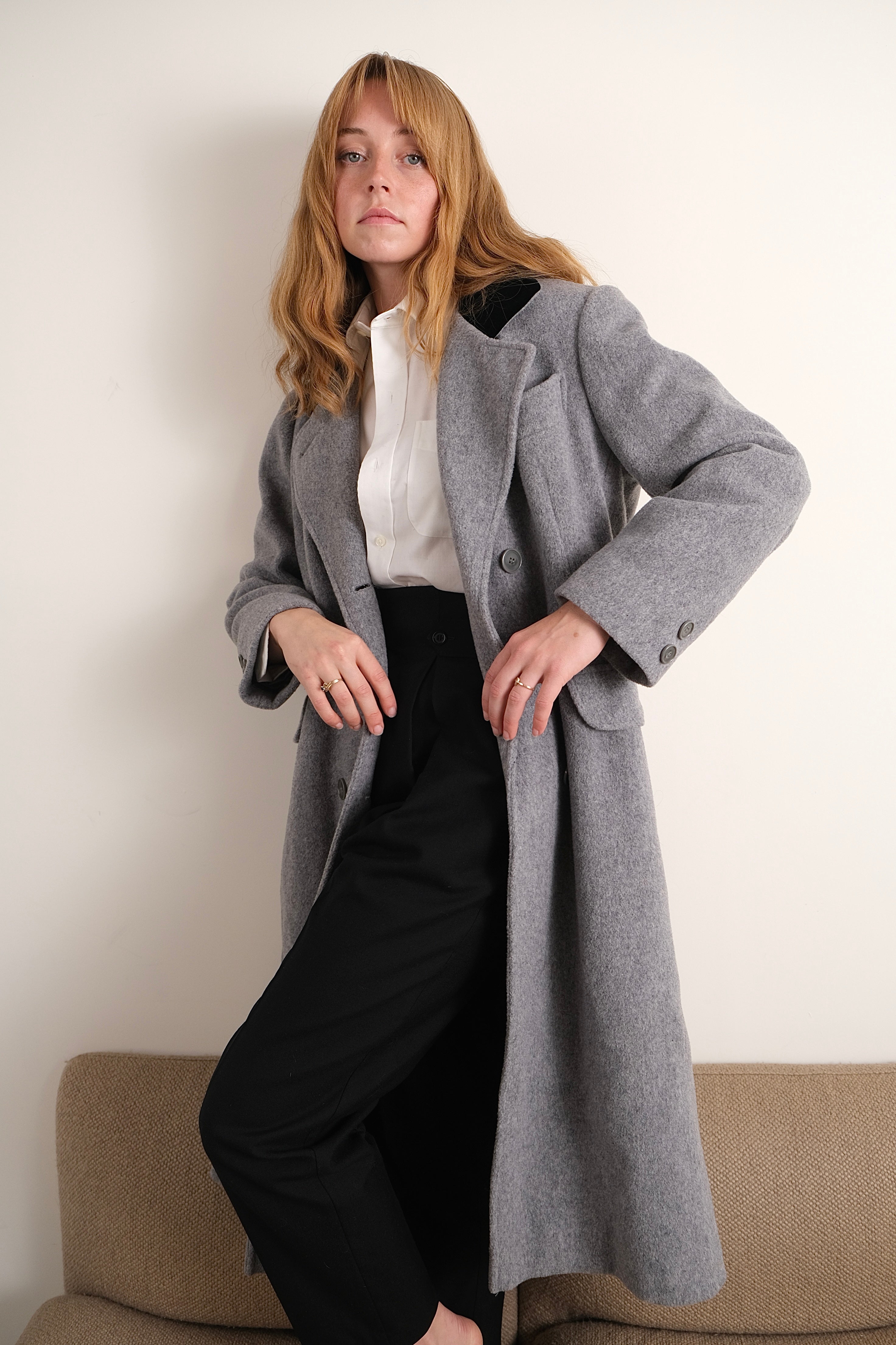 Vintage 80s Pewter Wool Blend Double Breasted Coat