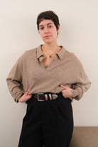Vintage 90s Flax Extra Fine Italian Merino Wool Long Sleeve Polo Sweater