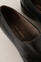 In black leather, these slip-on loafers feel supple yet structured. A clean, apronless vamp and rounded toe keep the profile streamlined, while a low heel and textured rubber outsole offer everyday traction and comfort. Lined in leather with a cushioned insole, they balance polish and ease.