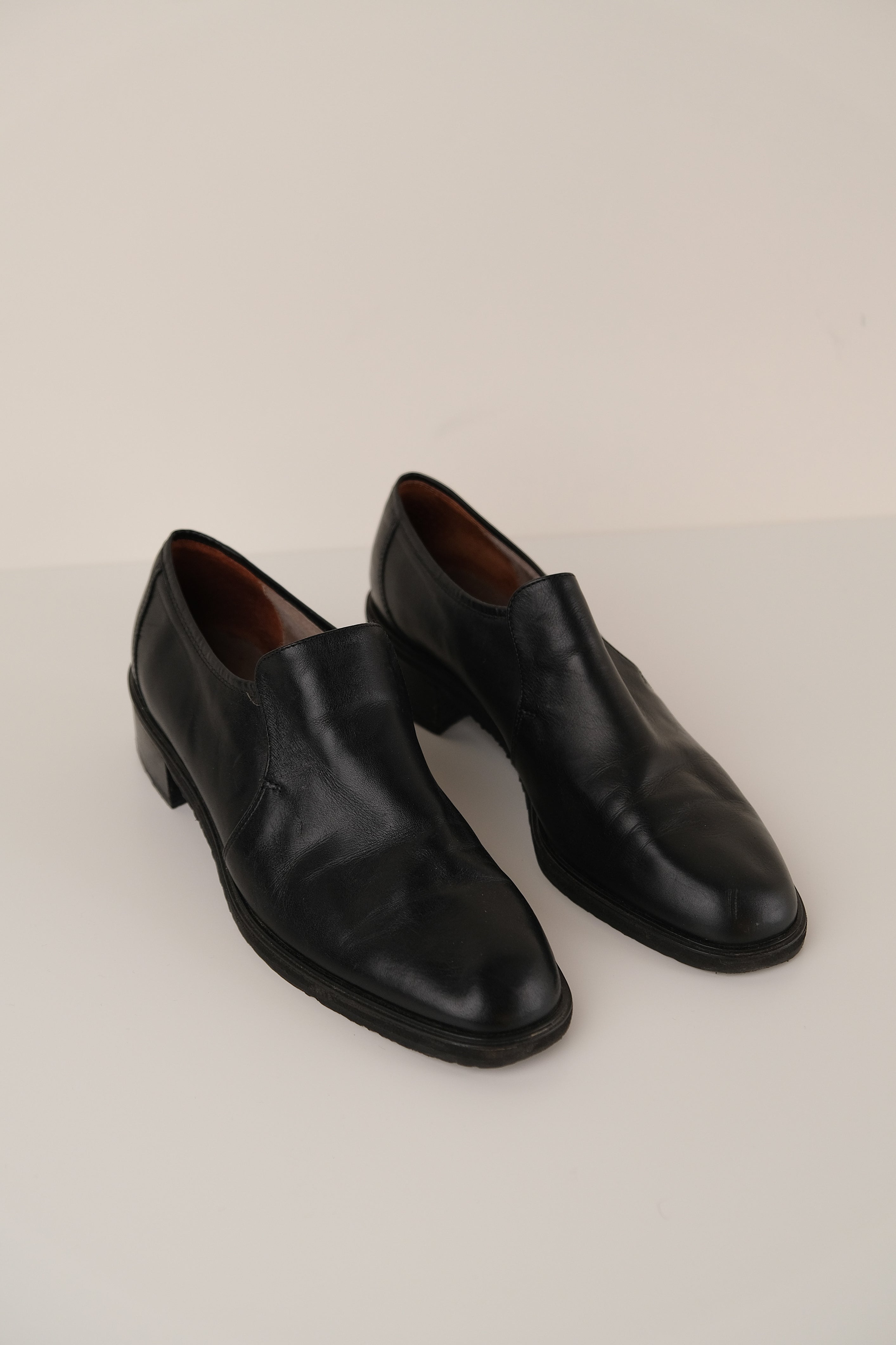 Vintage 90s Italian Carbon Leather Slip-On Loafers