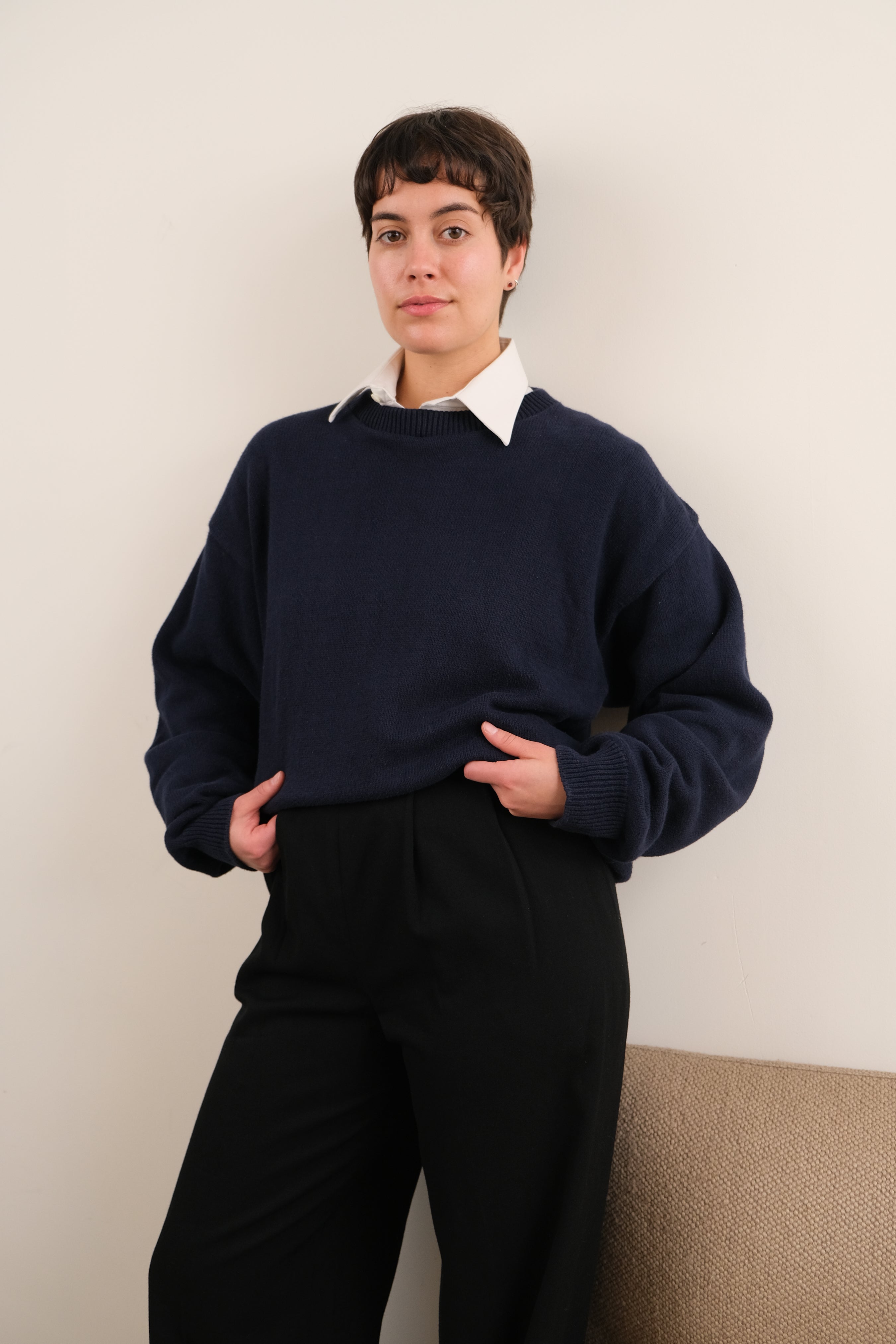 Vintage 90s Midnight Cotton Knit Long Sleeve Sweater