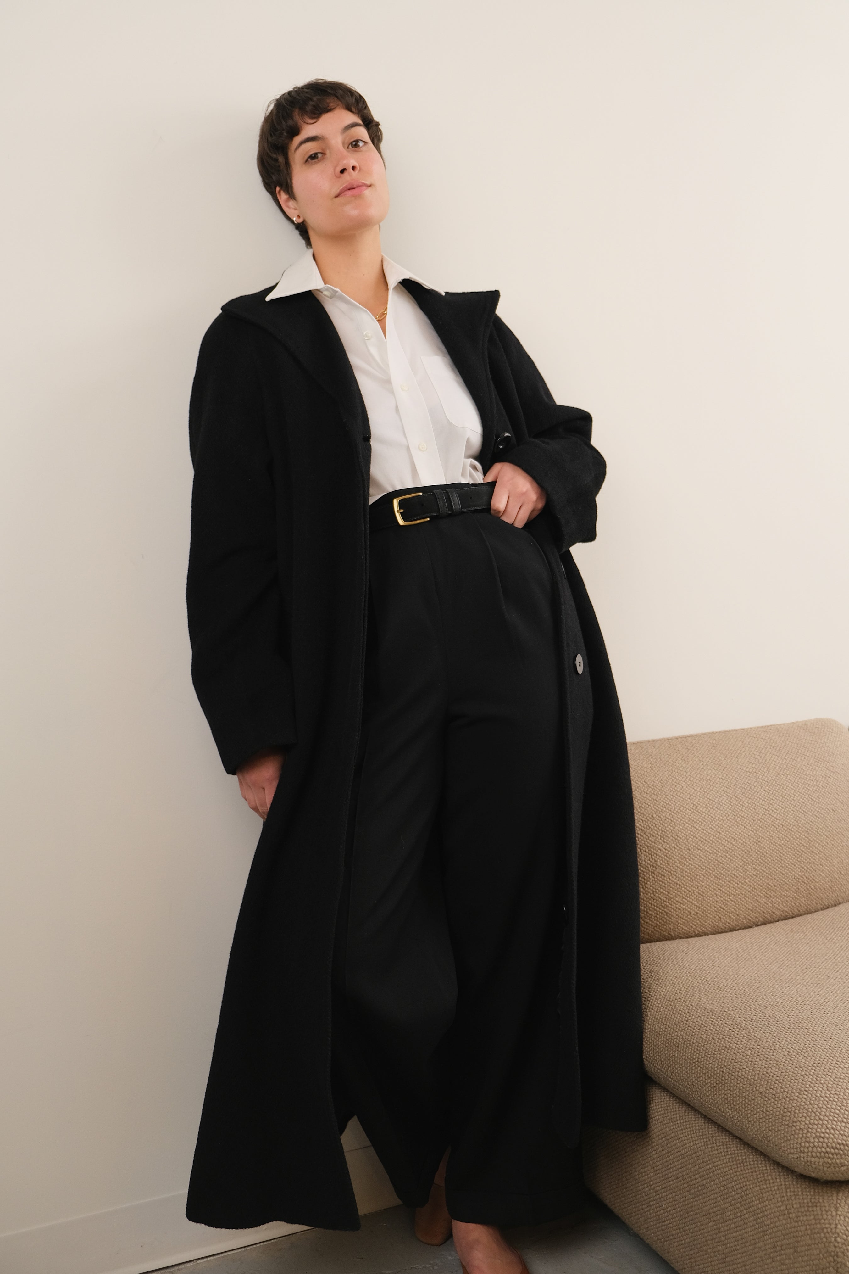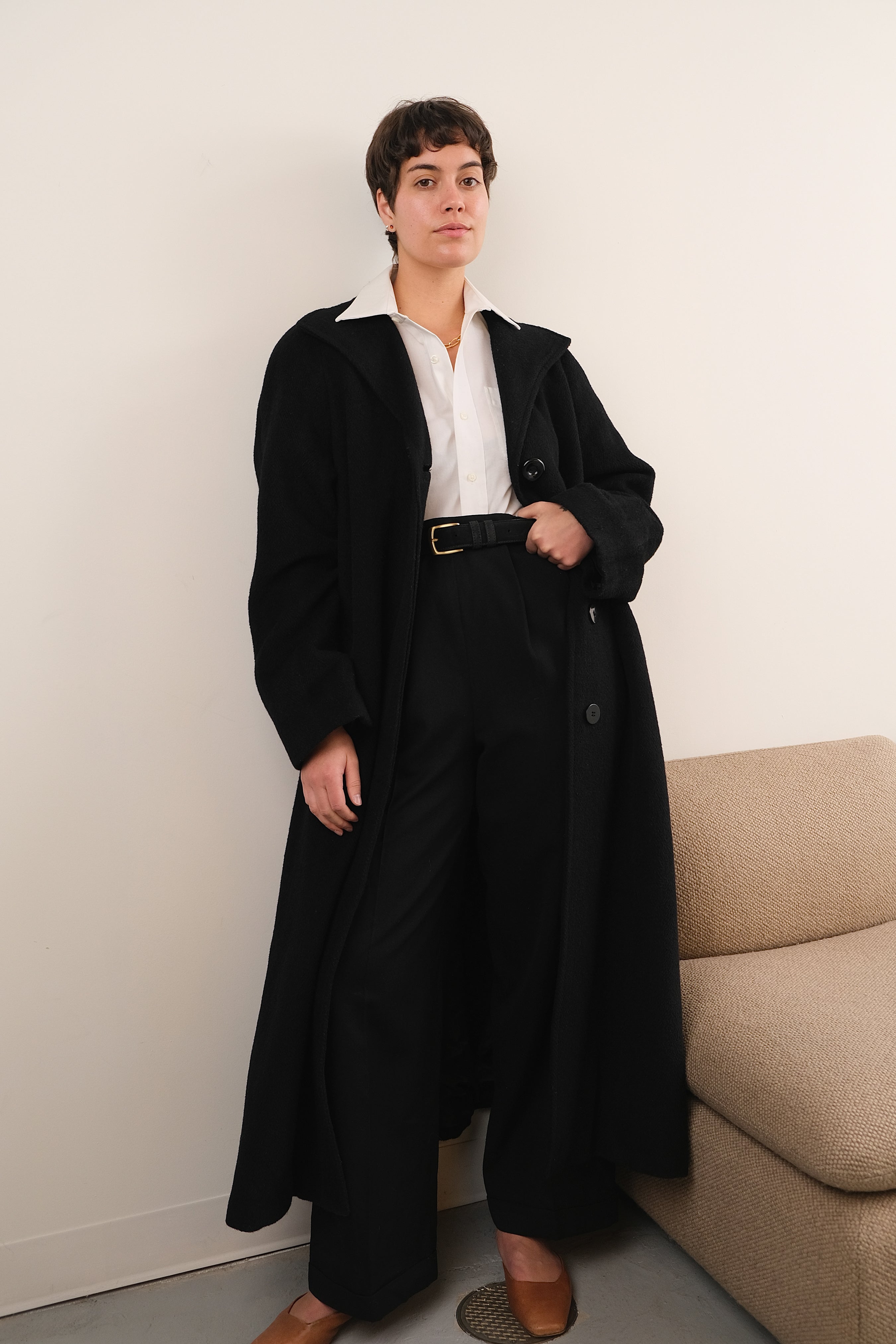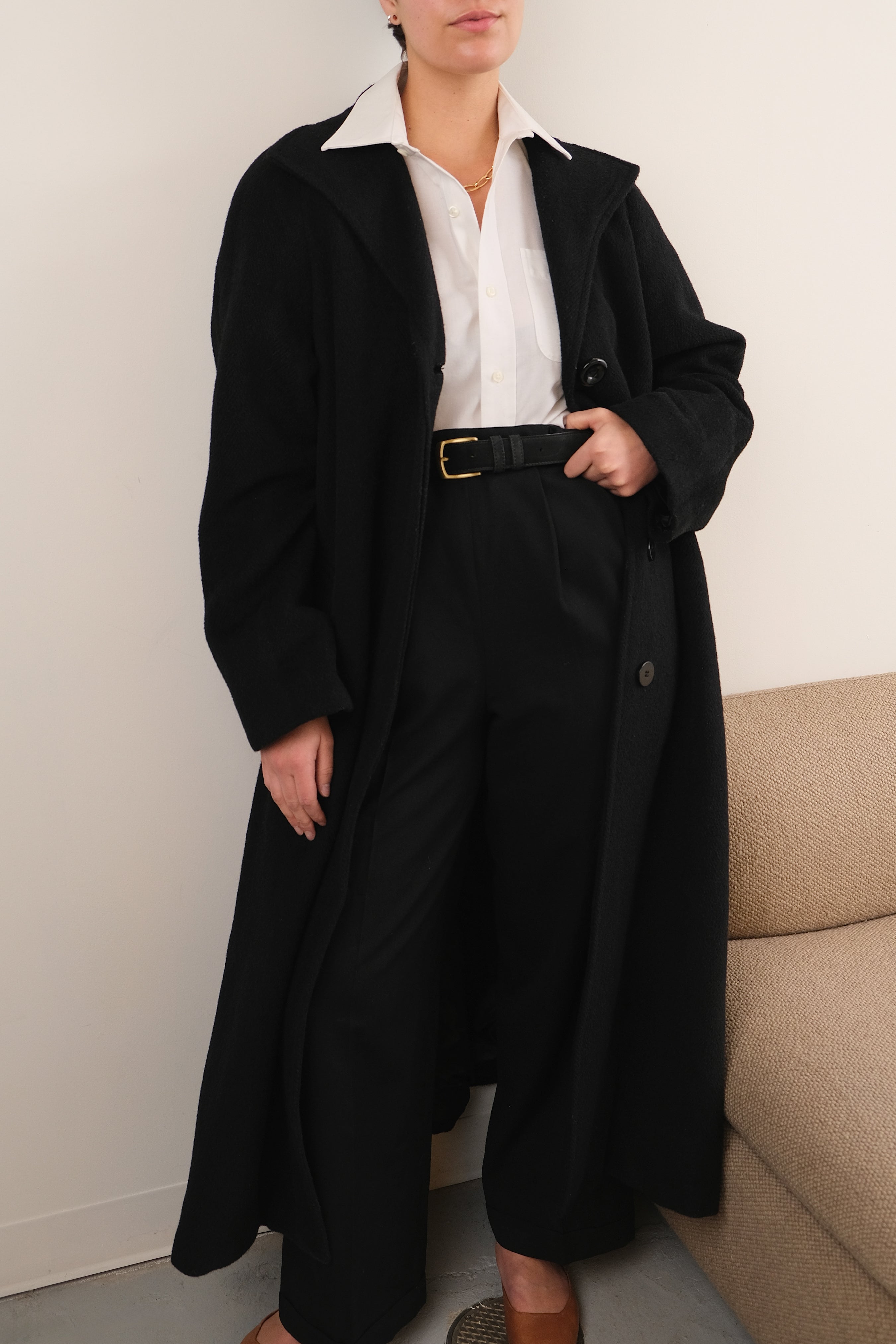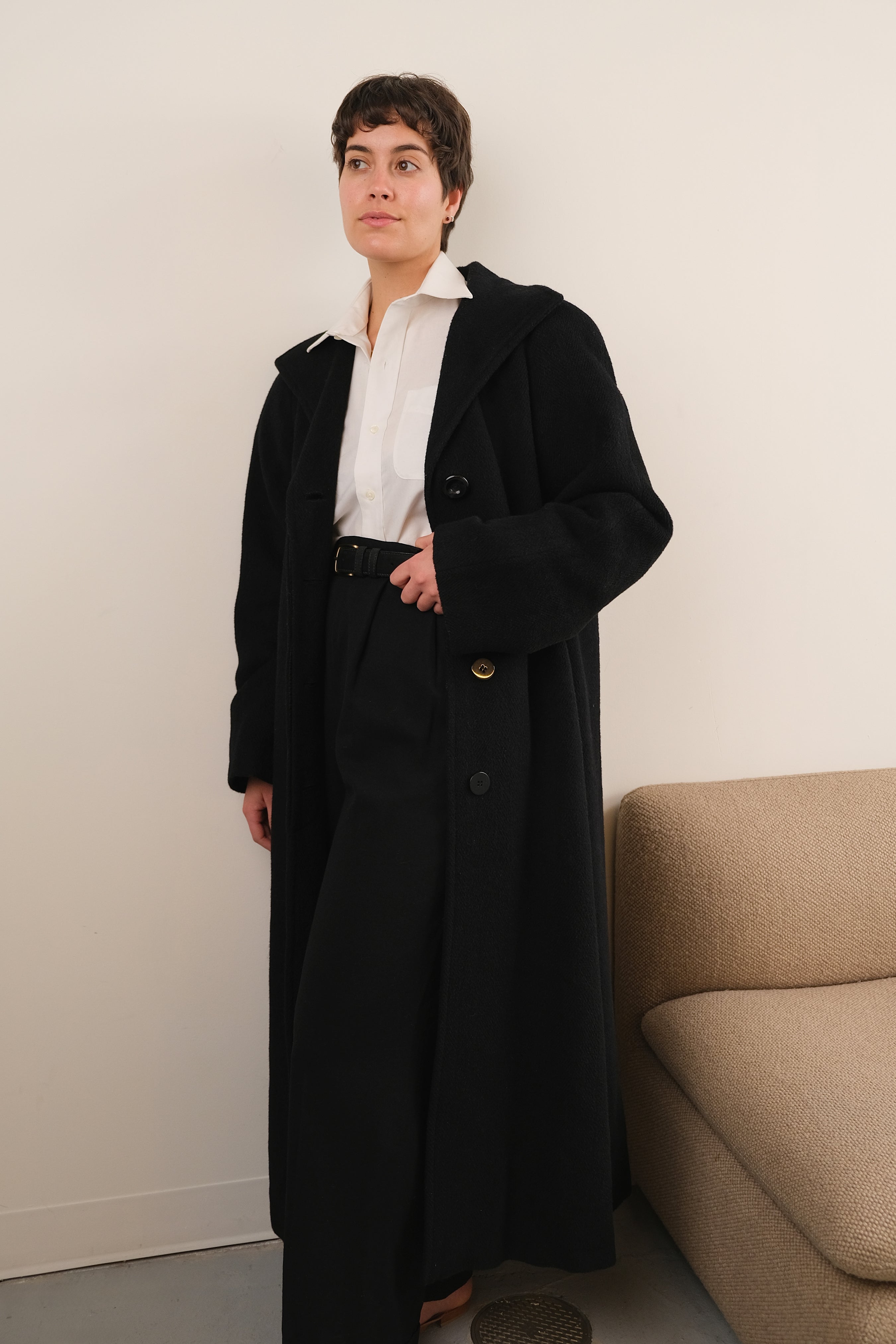 Vintage 90s Onyx Wool Alpaca Full Length Coat