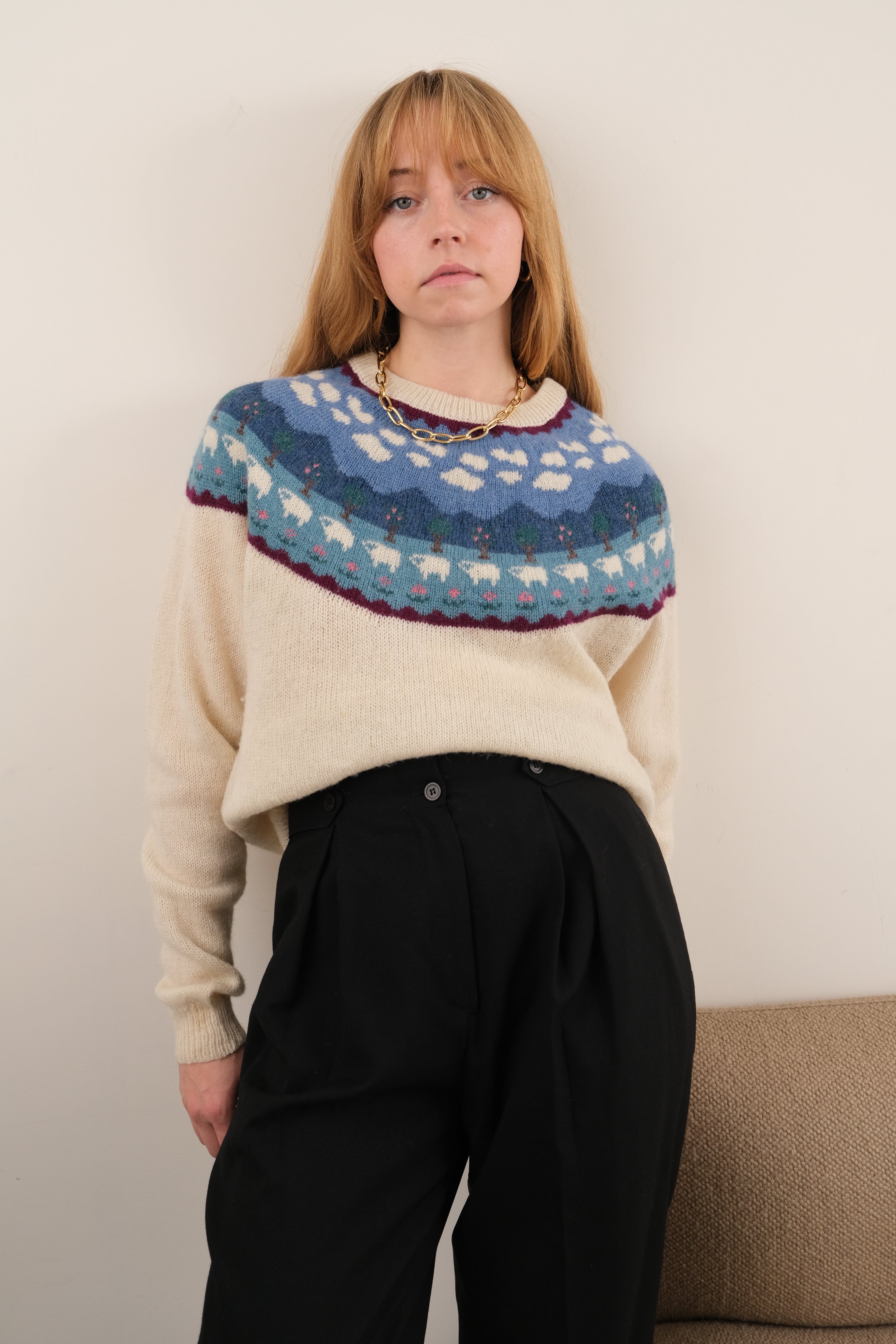Vintage Alpine Fair Isle Wool Crewneck Sweater