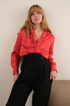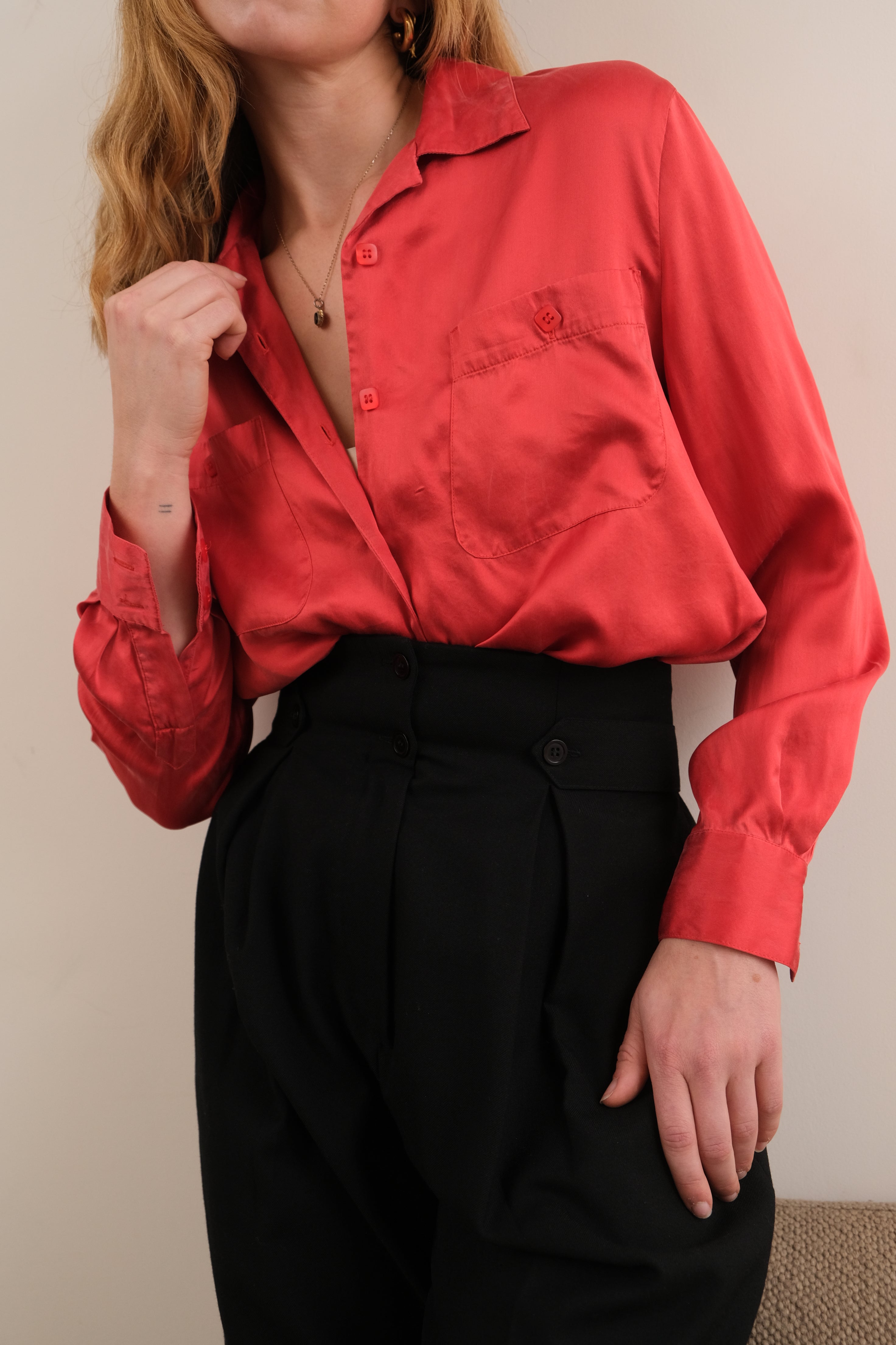 Vintage Rouge Silk Long Sleeve Button Up Shirt