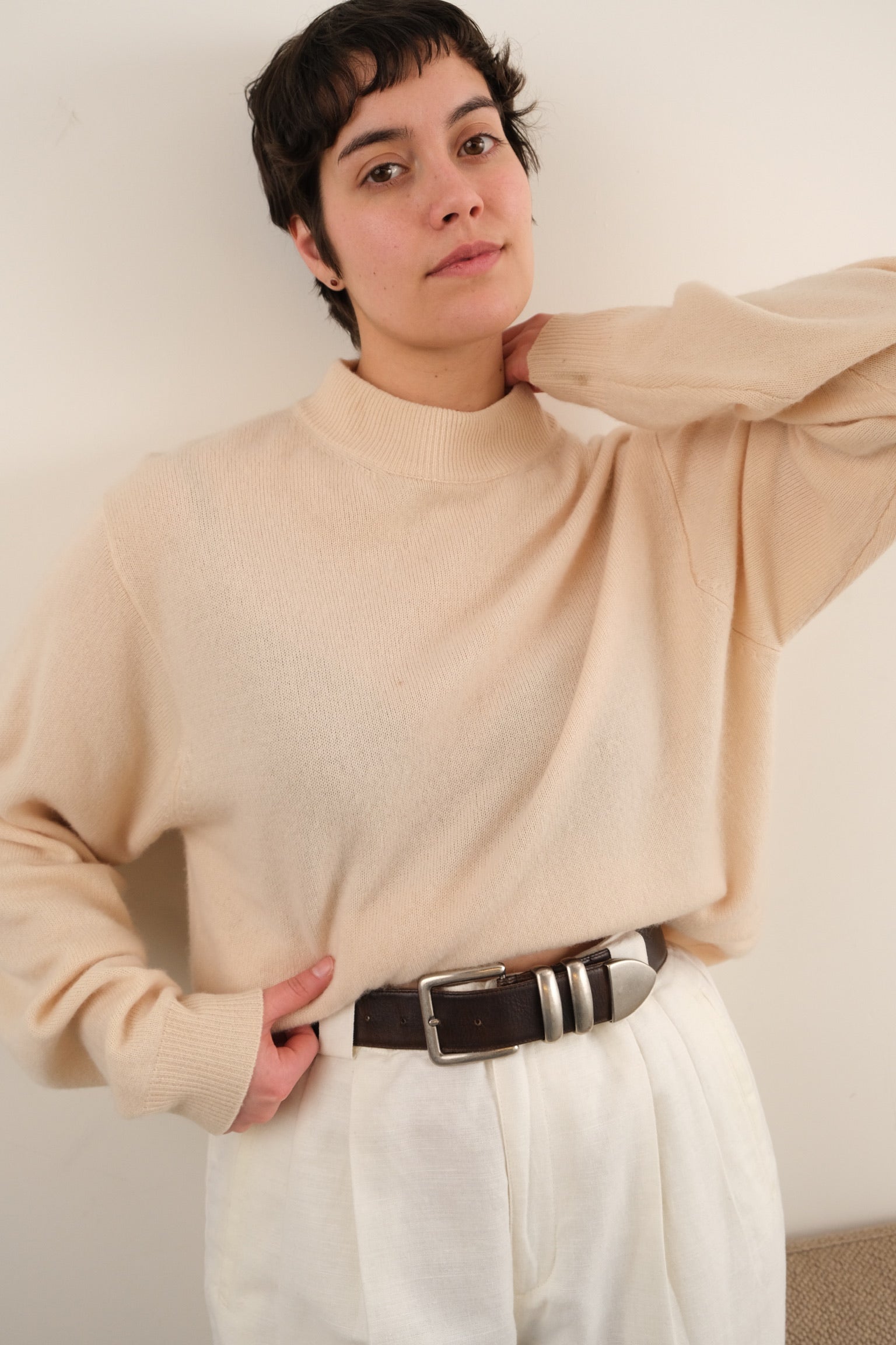 Vintage 90s Alabaster Cashmere Mock Neck Sweater