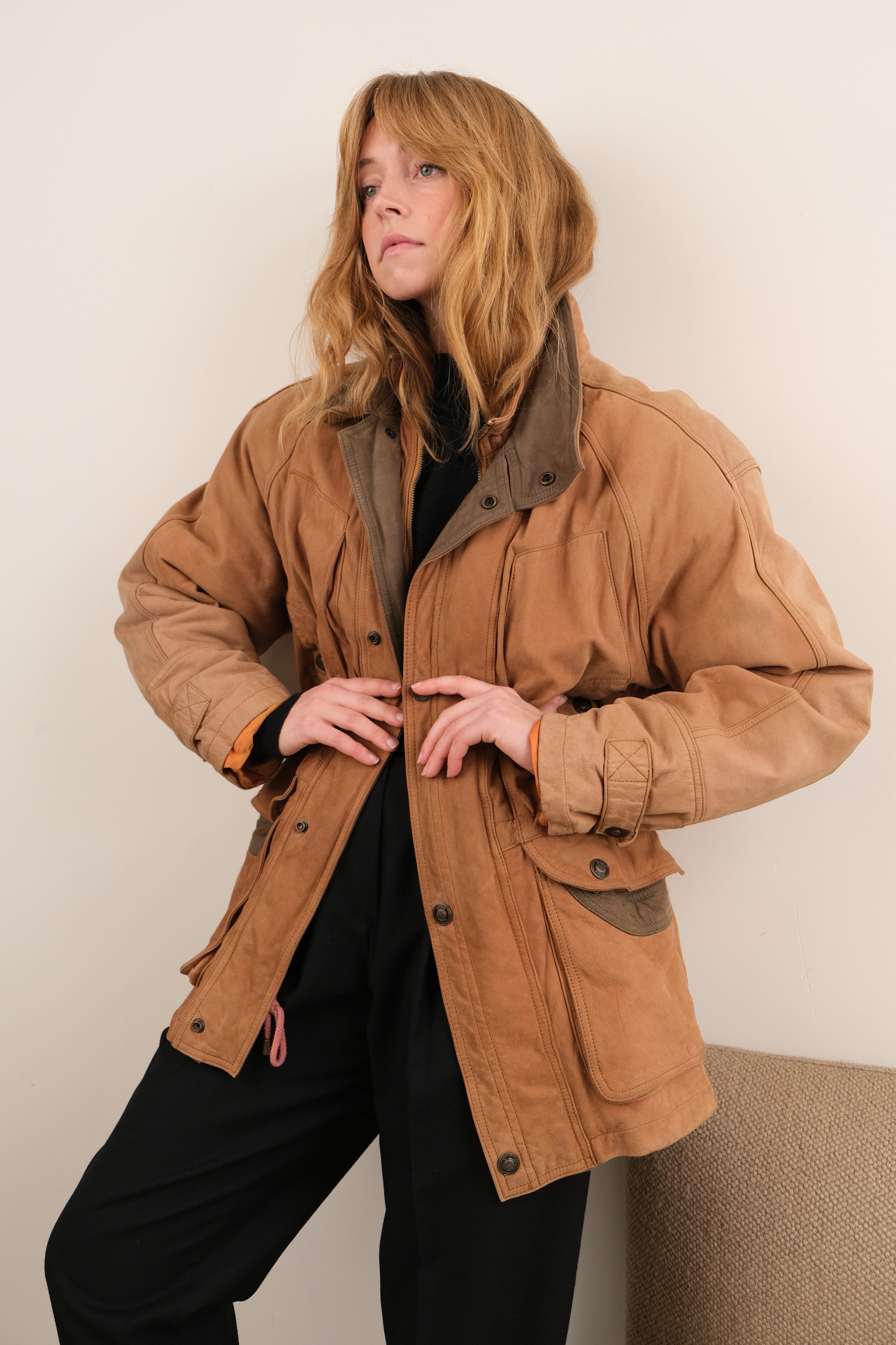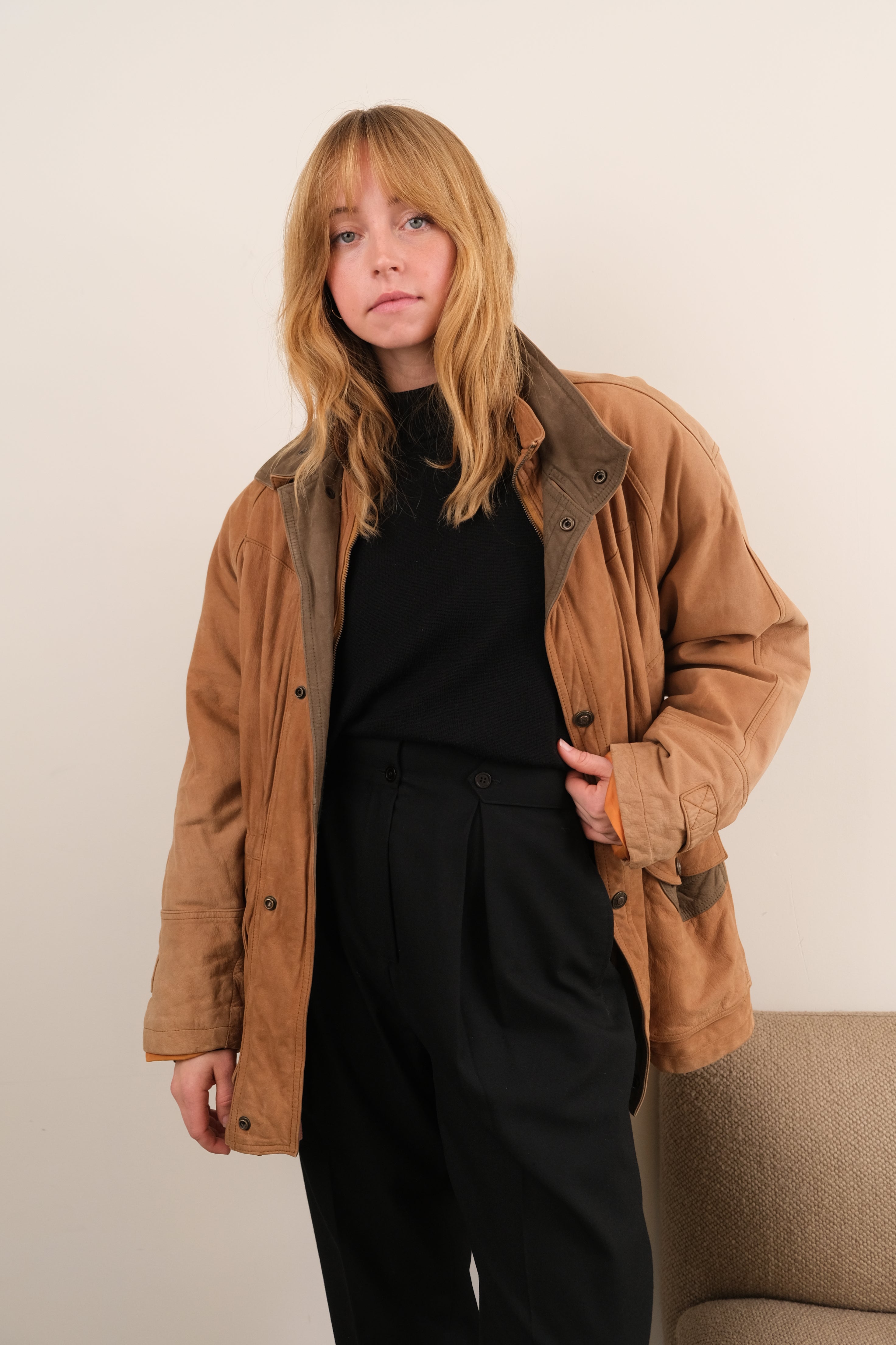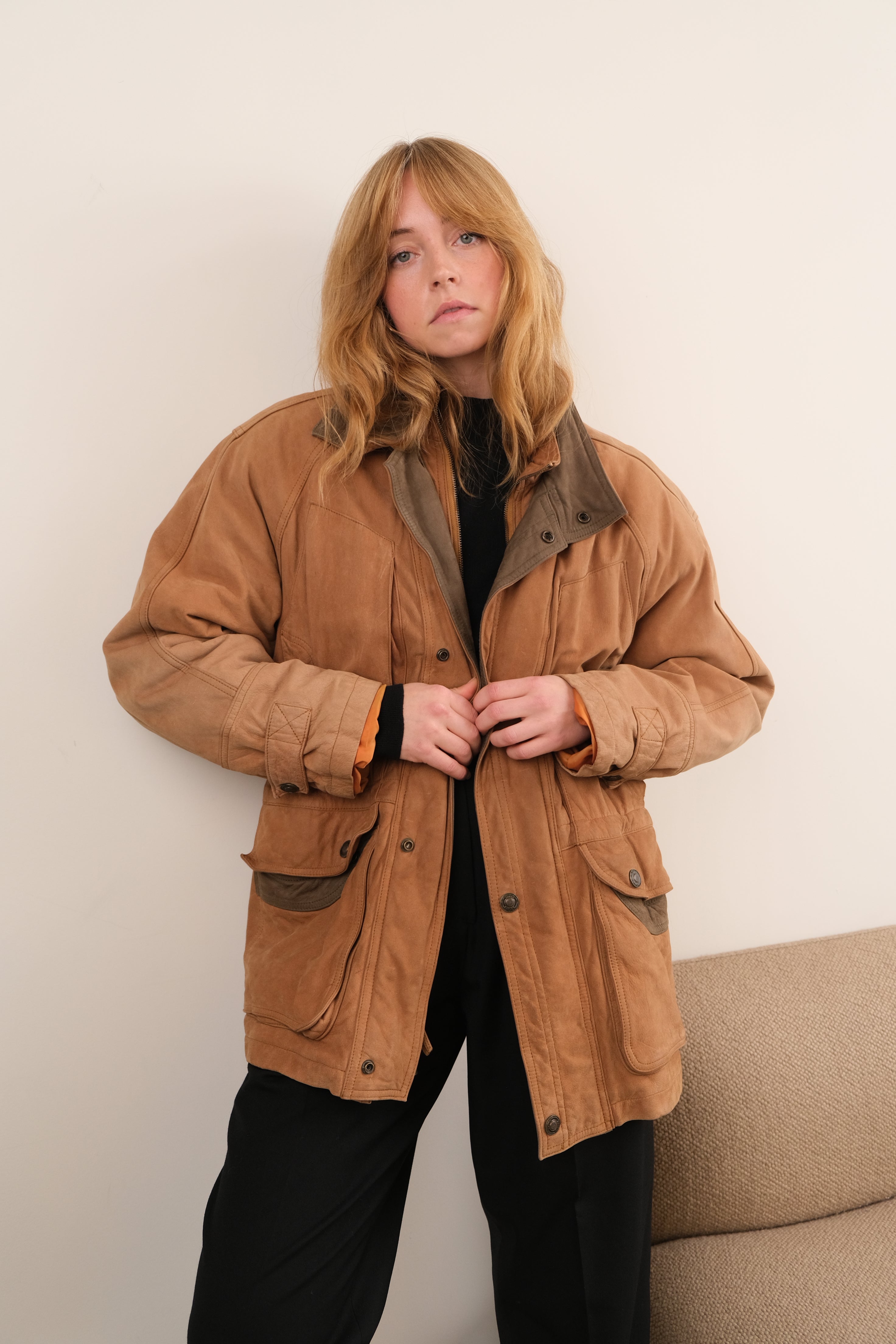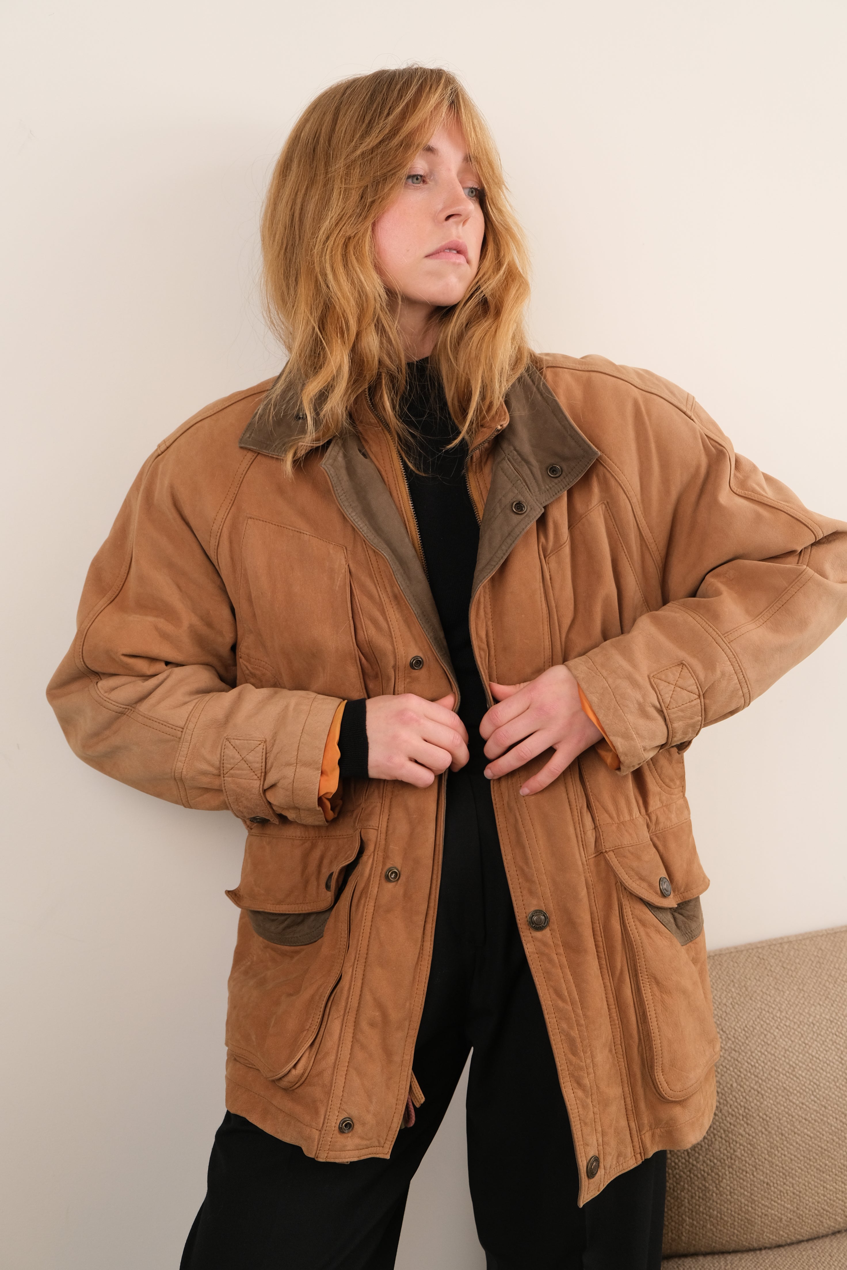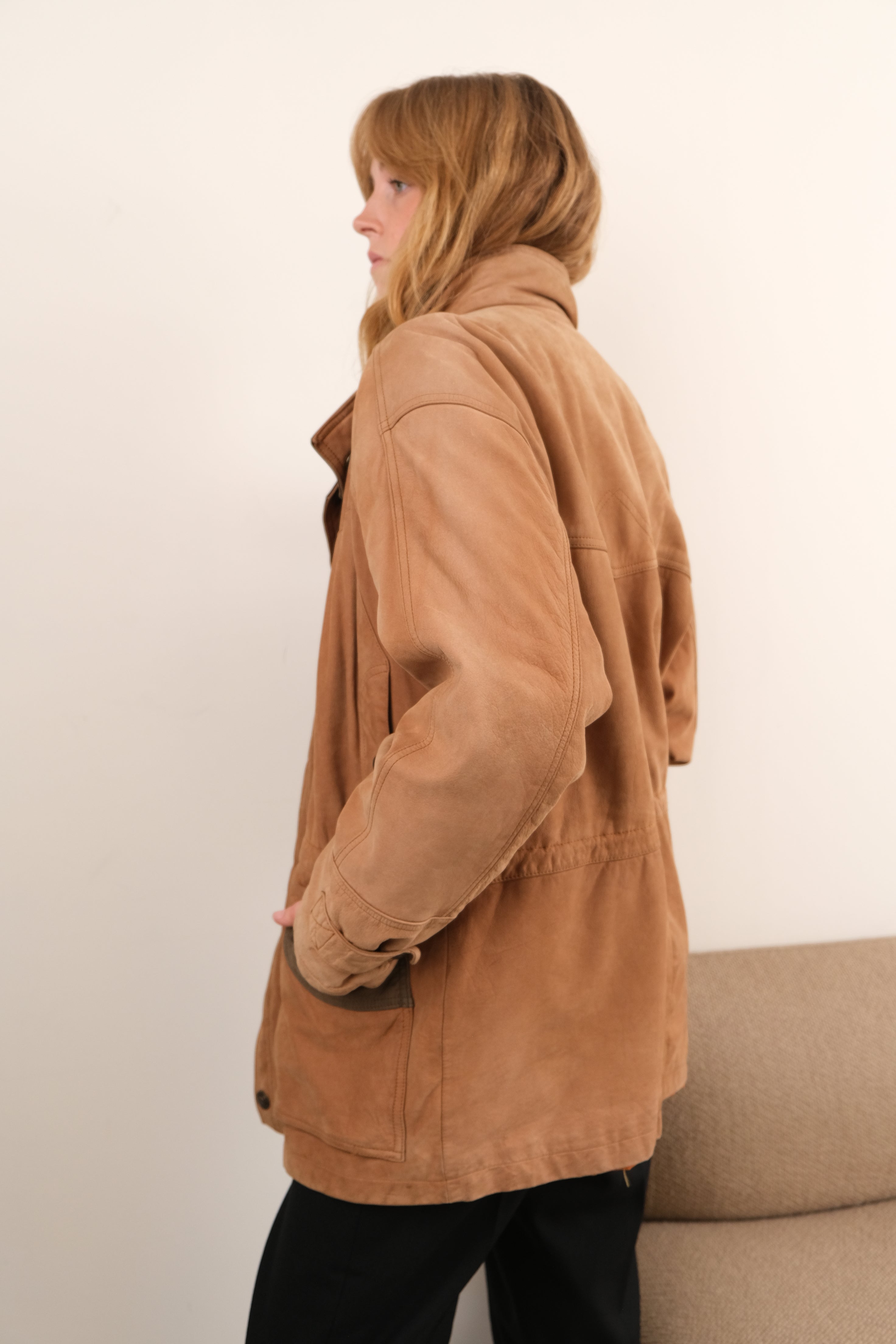 Vintage 90s Fawn Nubuck Cowhide Field Jacket