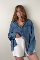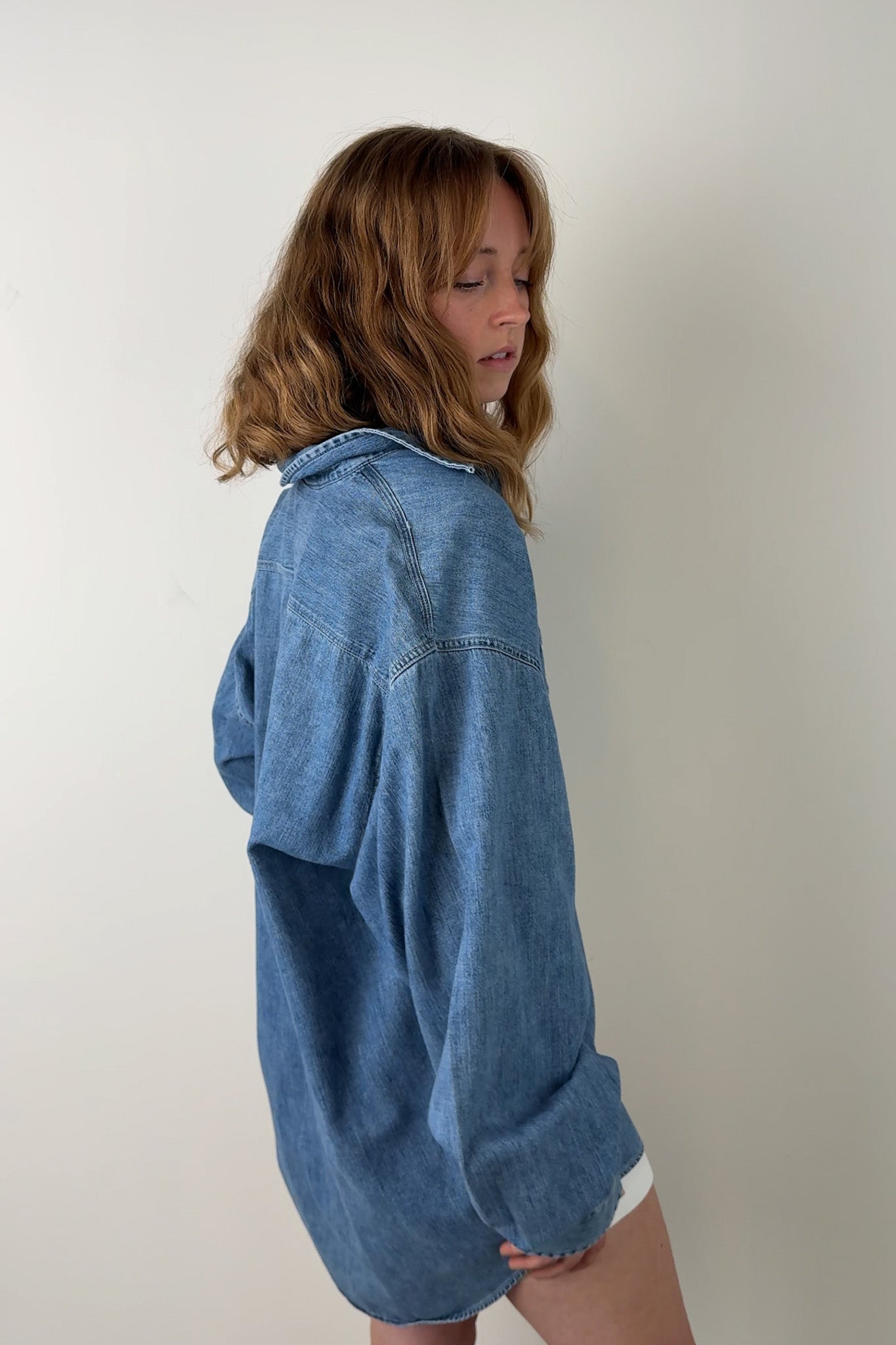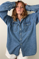 Vintage Faded Medium Wash Denim Button-Down Shirt