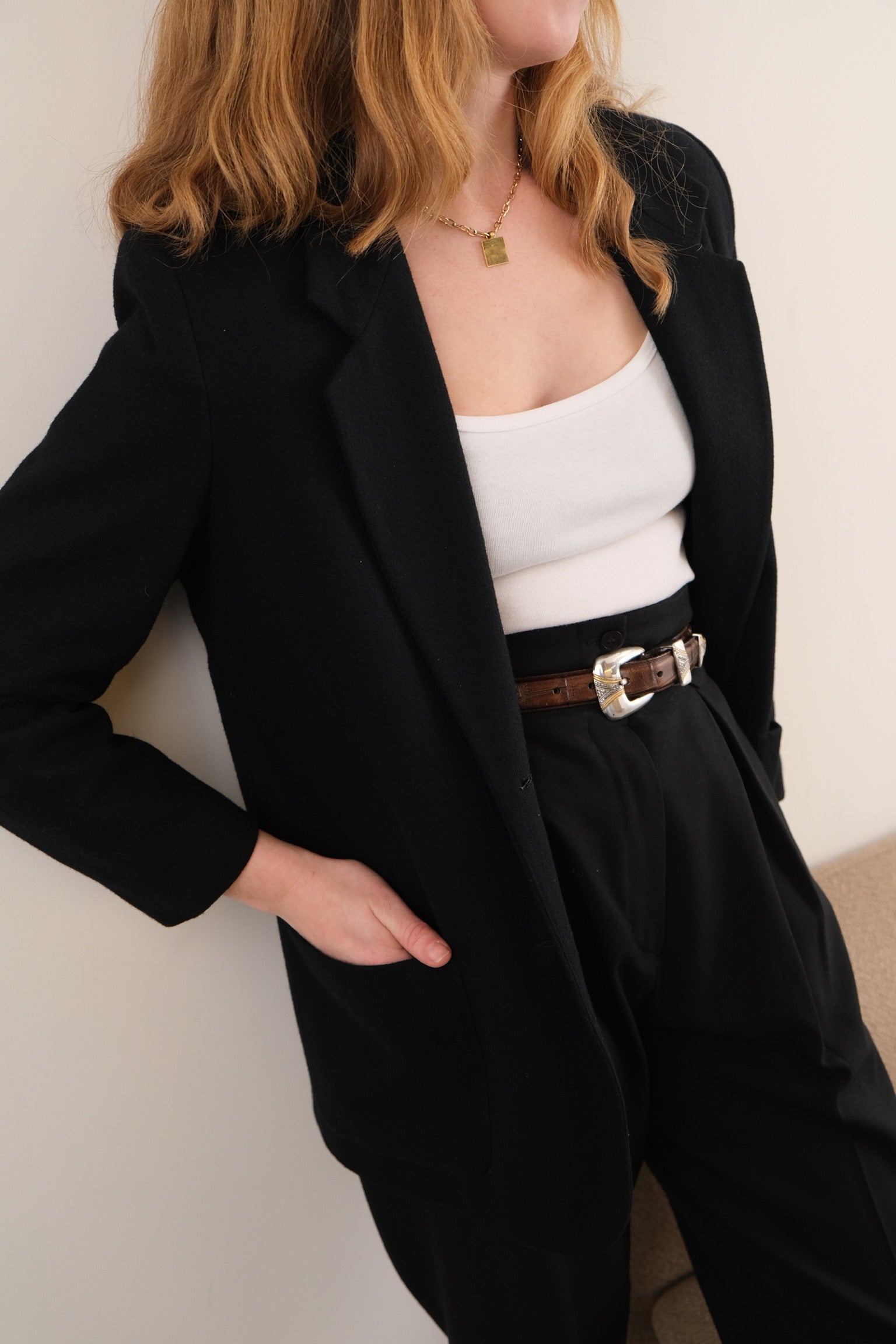Pair with our vintage button down shirts and high waisted trousers for a refined everyday look.