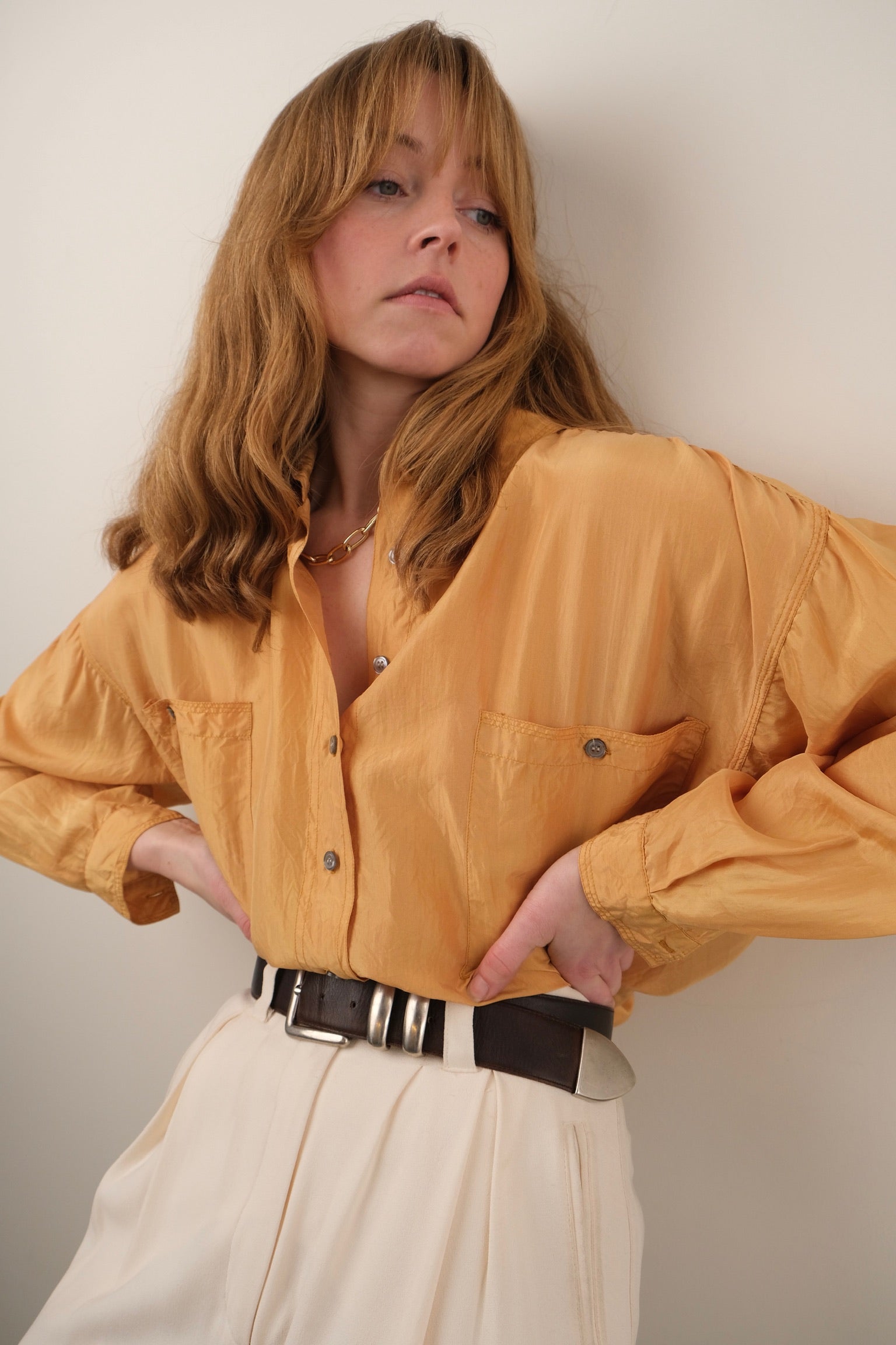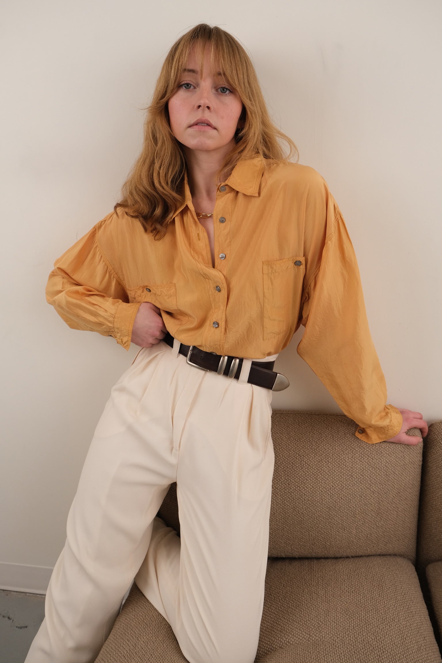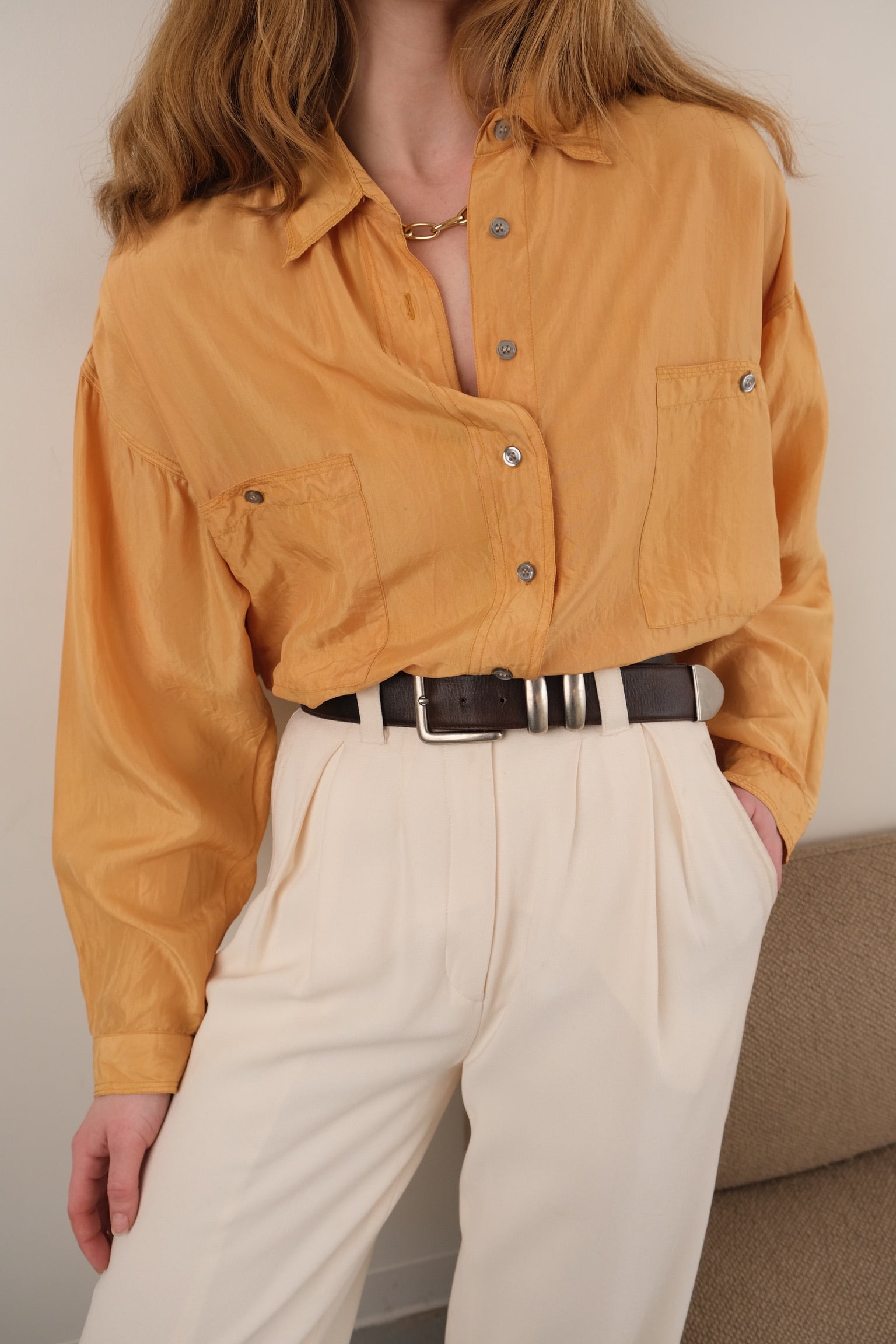 Vintage 90s Saffron Silk Long Sleeve Button Up Blouse