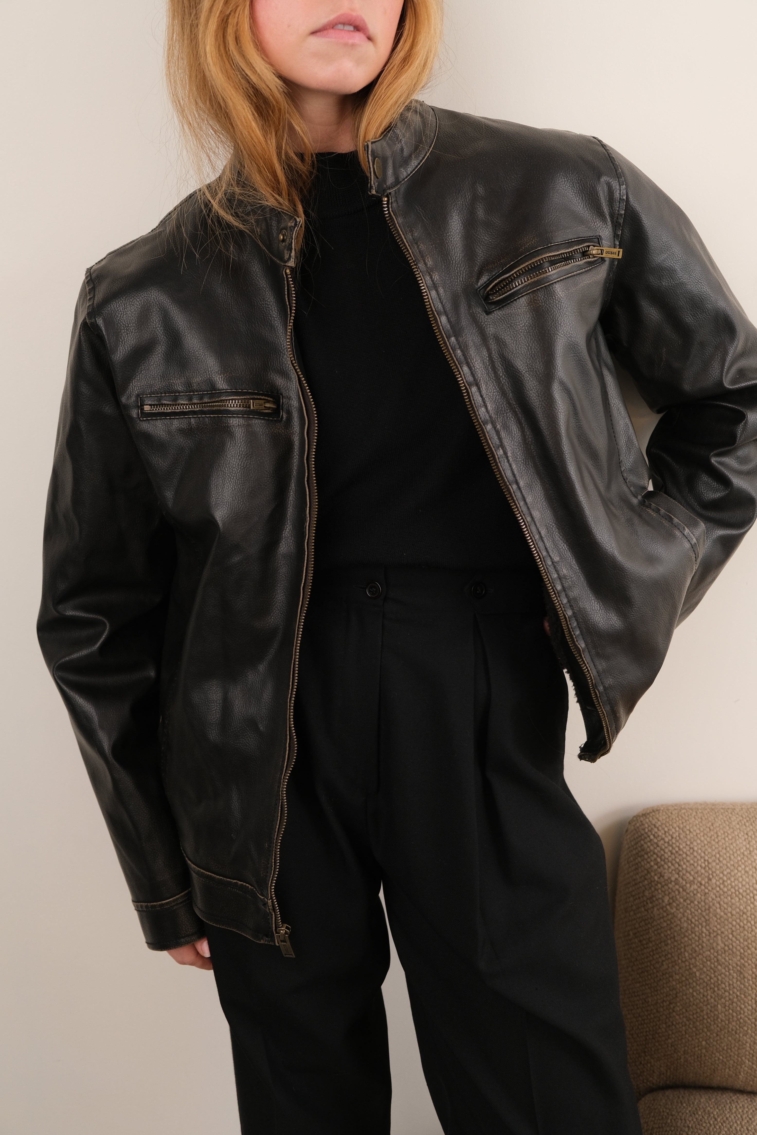 Vintage 00s Espresso Faux Leather Sherpa Lined Jacket