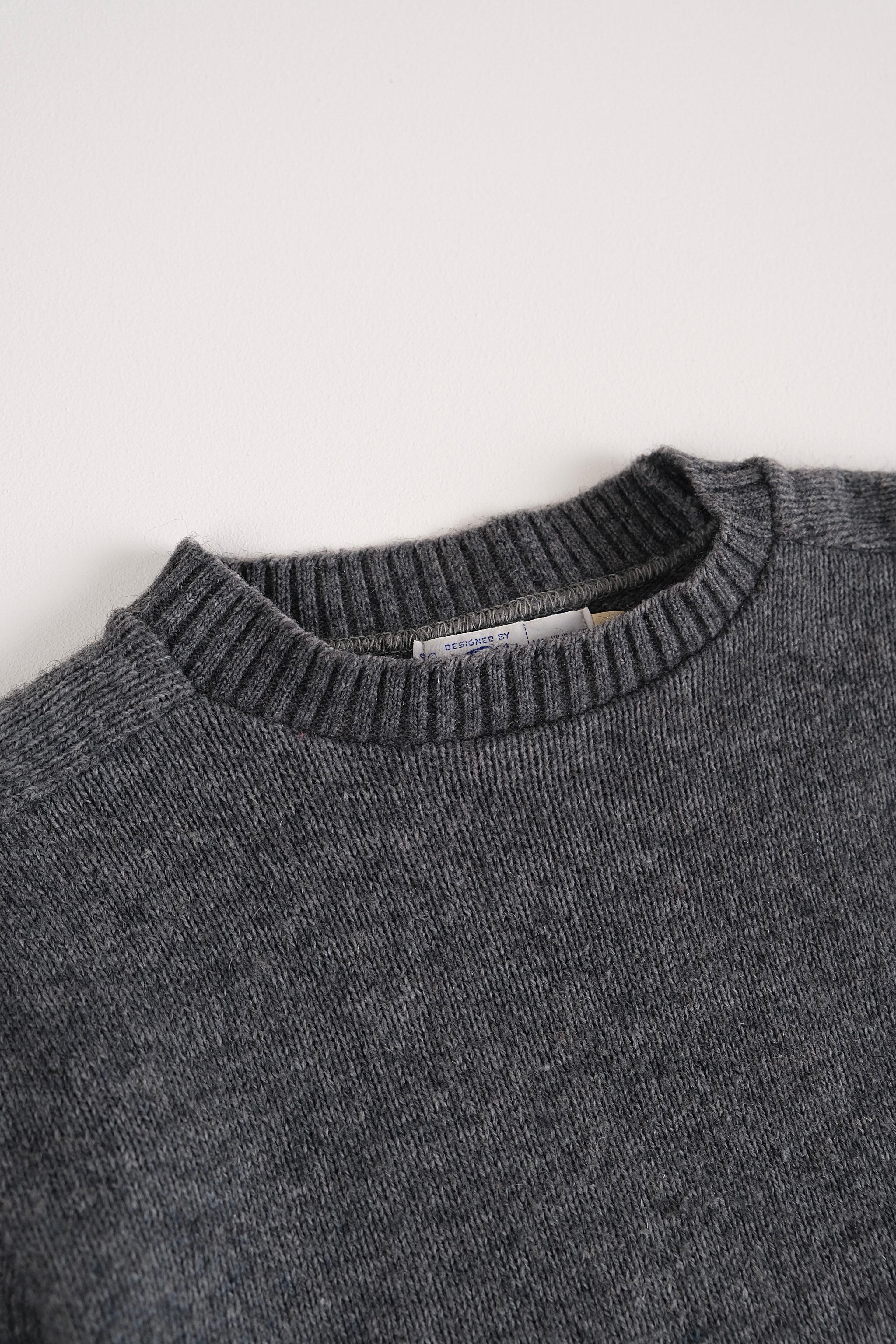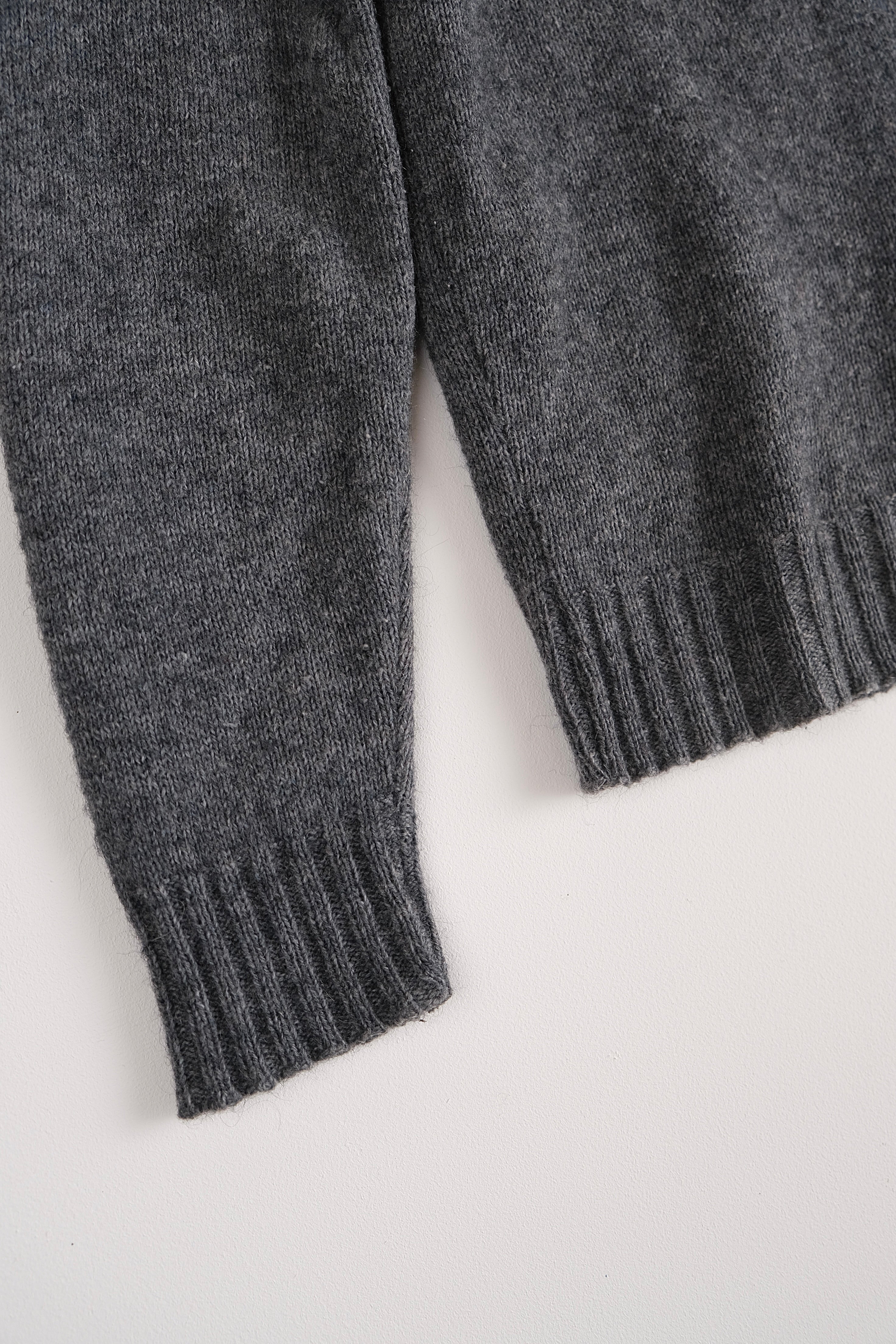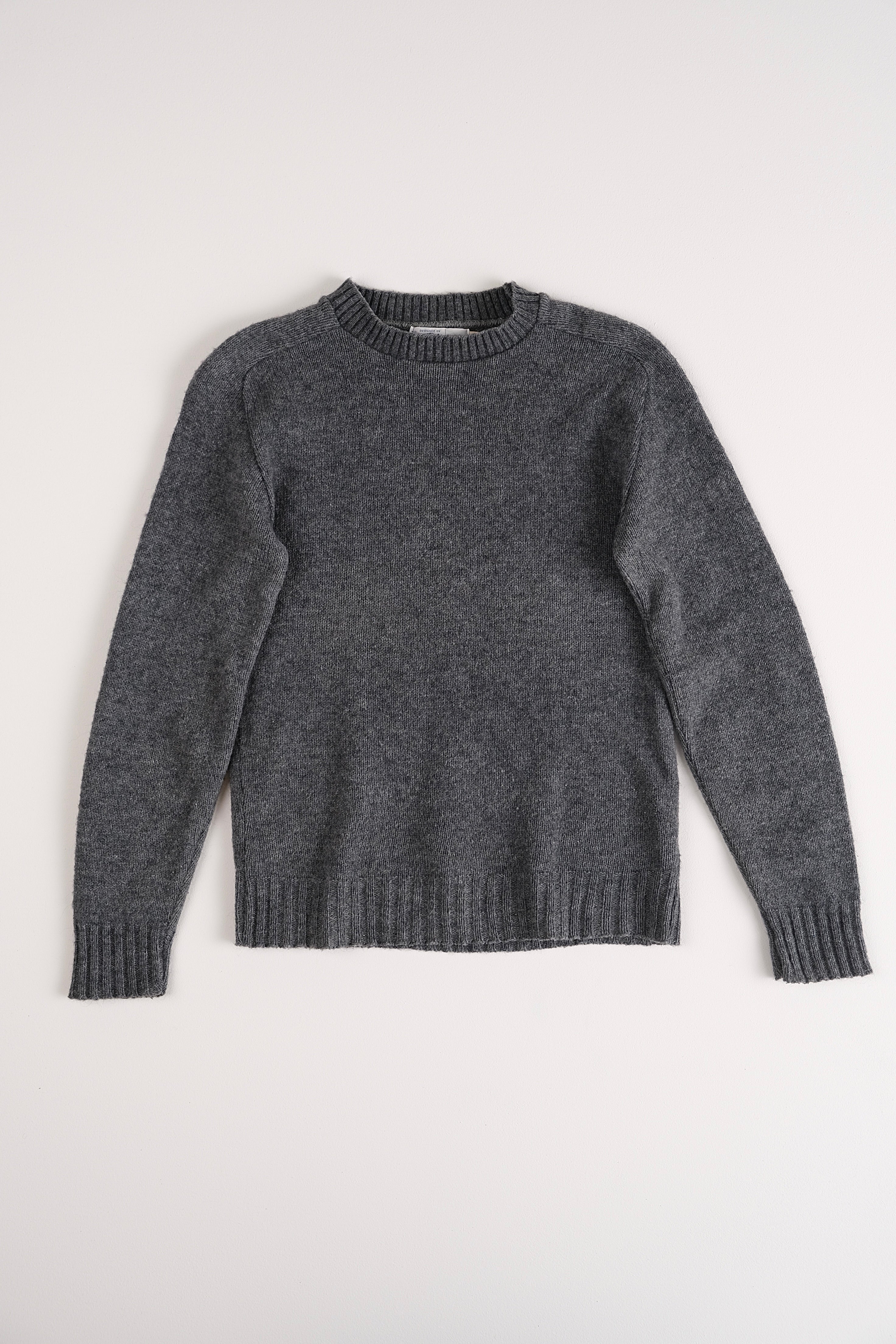 Softly spun from Shetland wool blended with polyester, this crewneck carries a sturdy yet comfortable weight — durable enough for everyday wear while maintaining a plush, classic hand. The knit structure is dense and warm, finished with ribbed edges at the collar, cuffs, and hem for a clean and timeless silhouette. A hallmark piece from Fall River Knitting Mills, designed with enduring simplicity and function in mind.