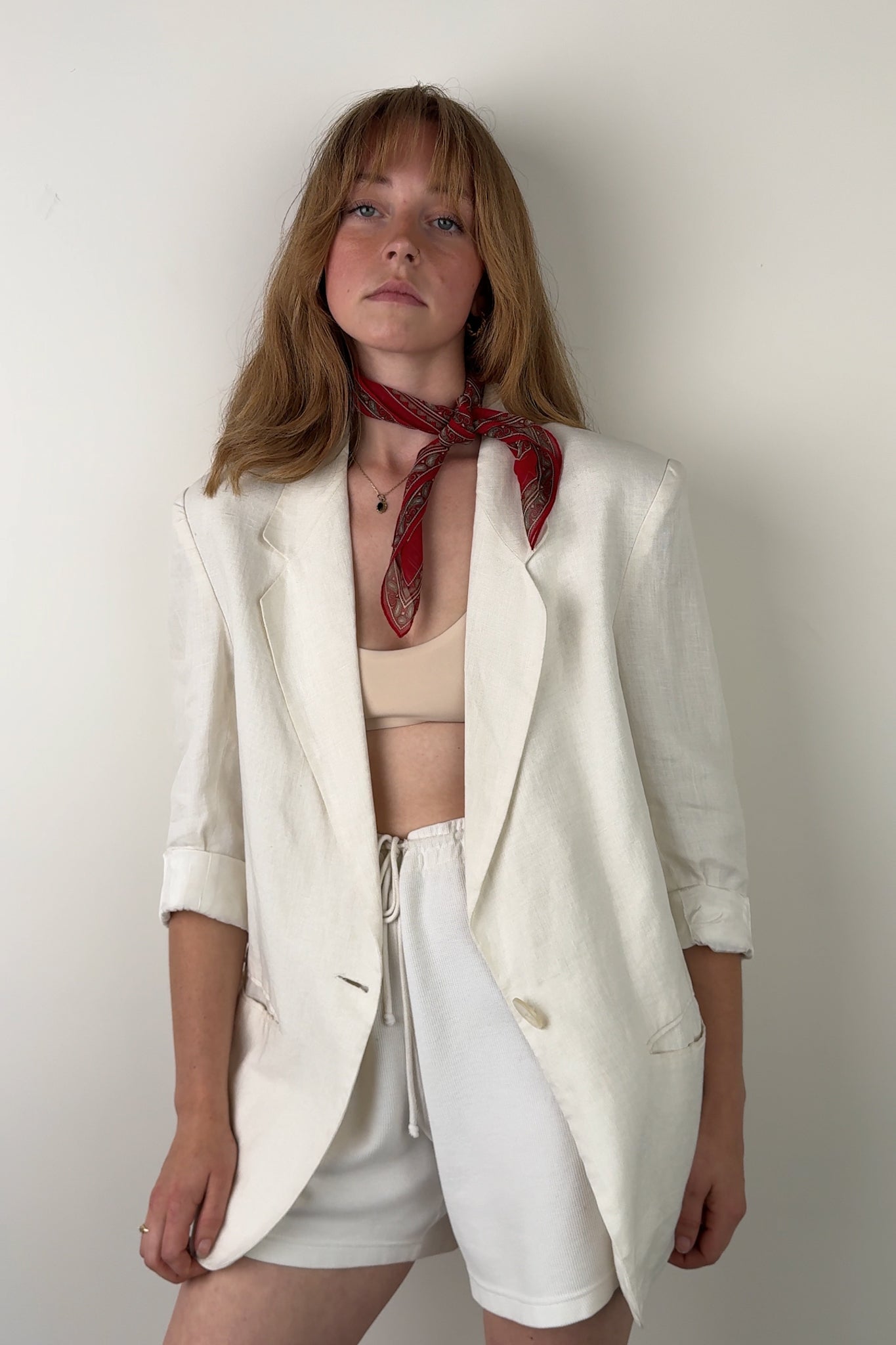 Rendered in a striking vermilion hue, this vintage silk scarf features an intricate paisley motif accented with golden and earthy tones. Its semi-sheer weave offers a fluid drape and lightweight finish, making it an ideal accent piece for both casual and refined ensembles. Whether tied at the neck, worn as a headscarf, or draped over a bag, it adds a timeless layer of texture and pattern.