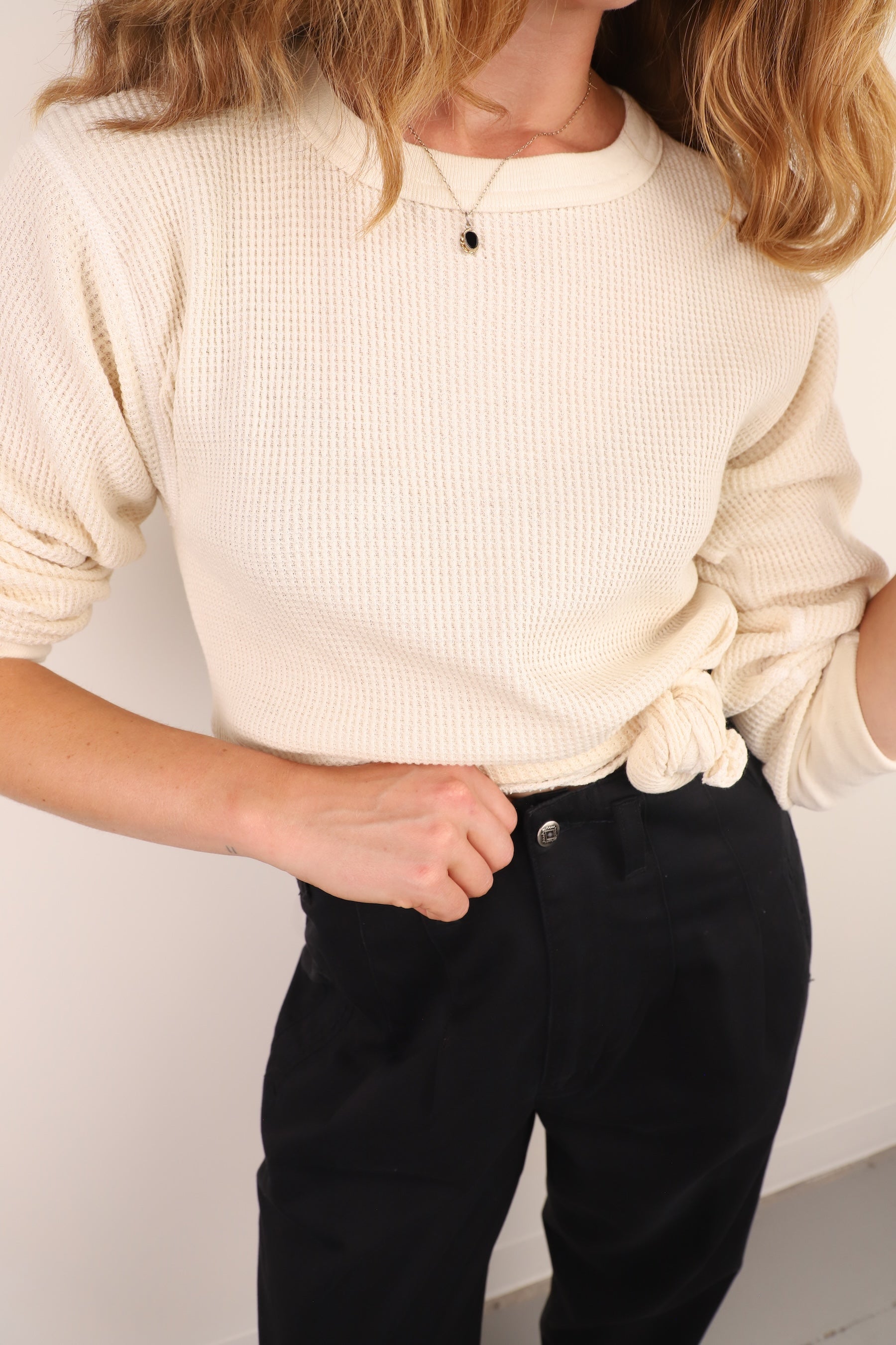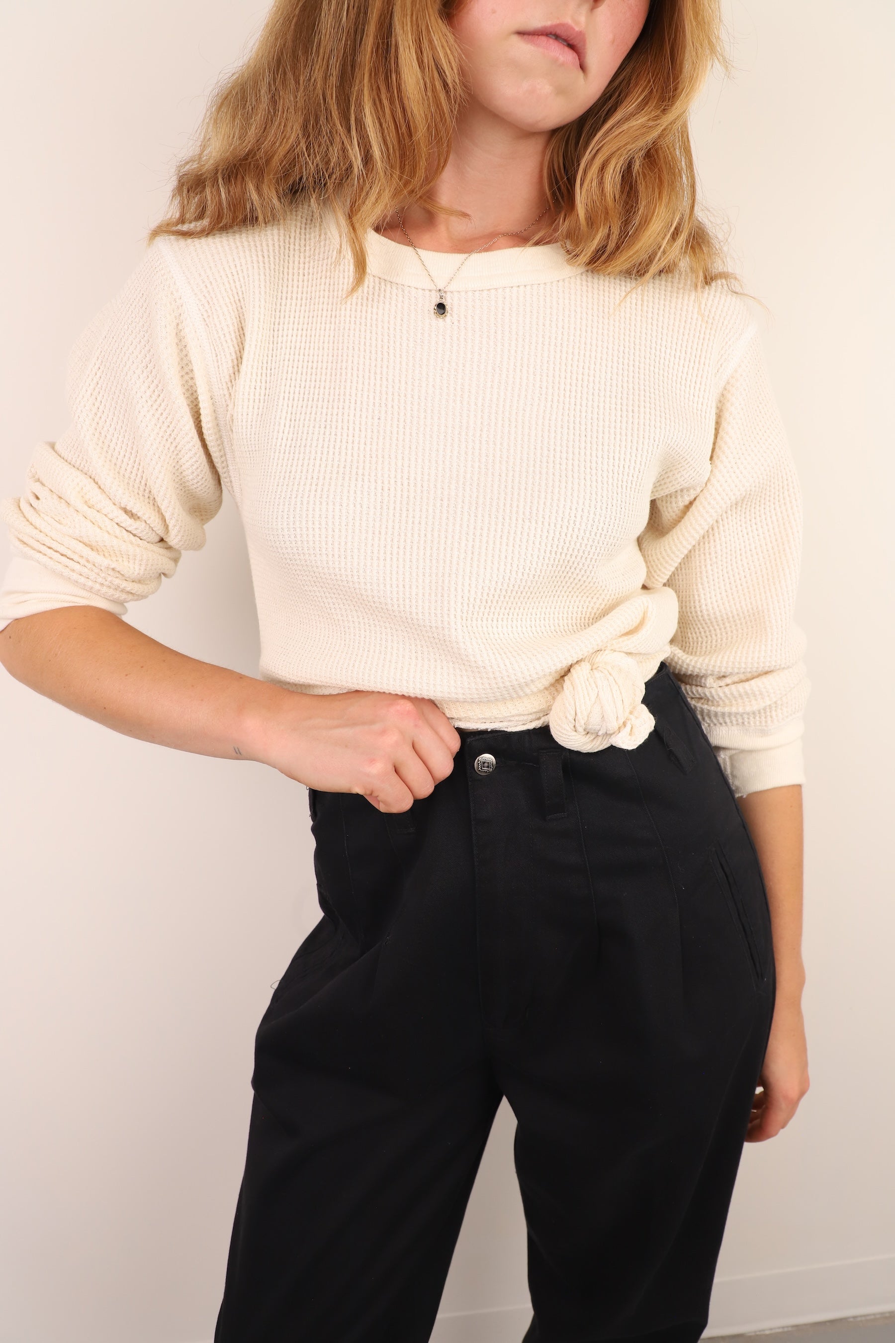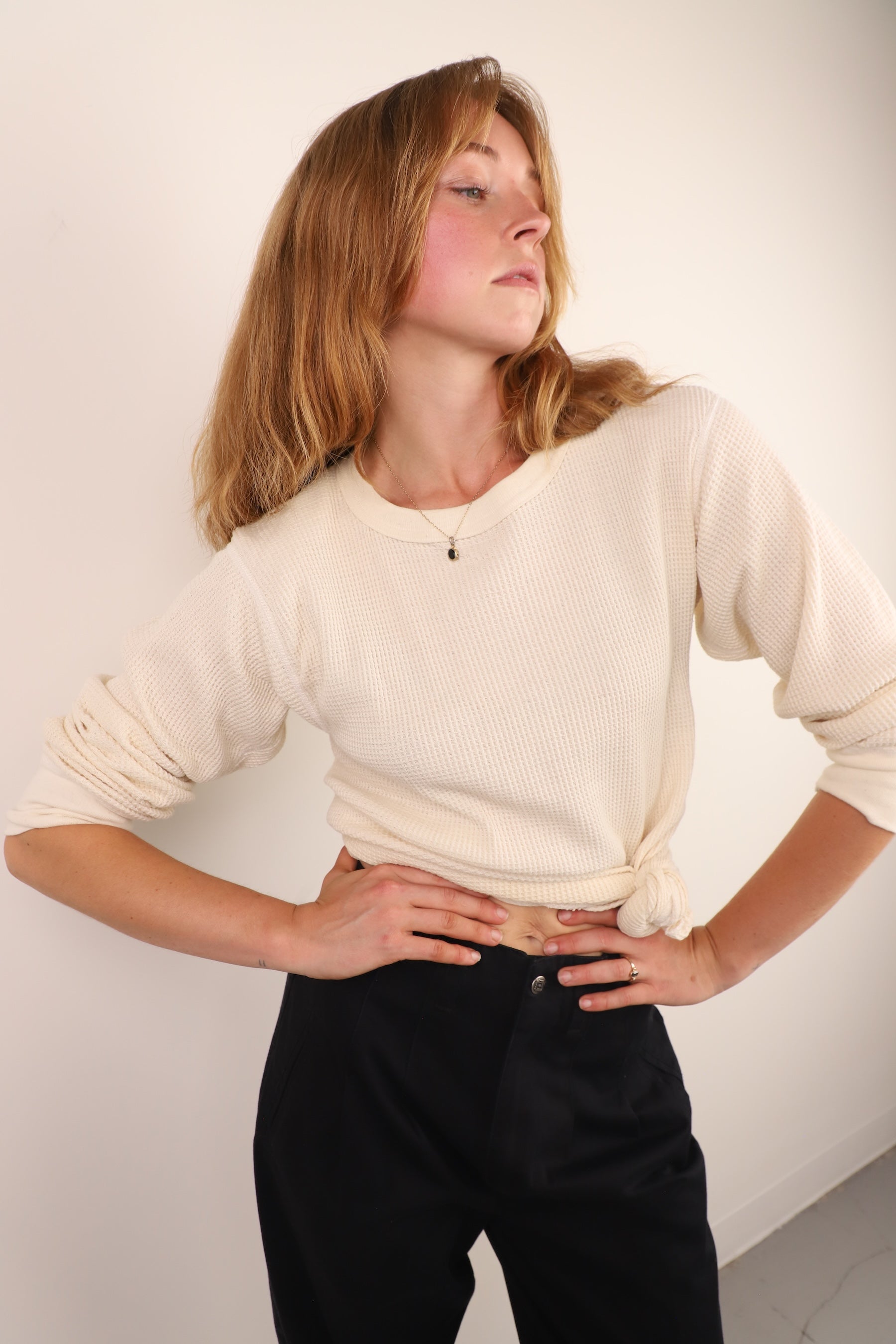Vintage 80s Buttermilk Cotton Thermal Long Sleeve Shirt