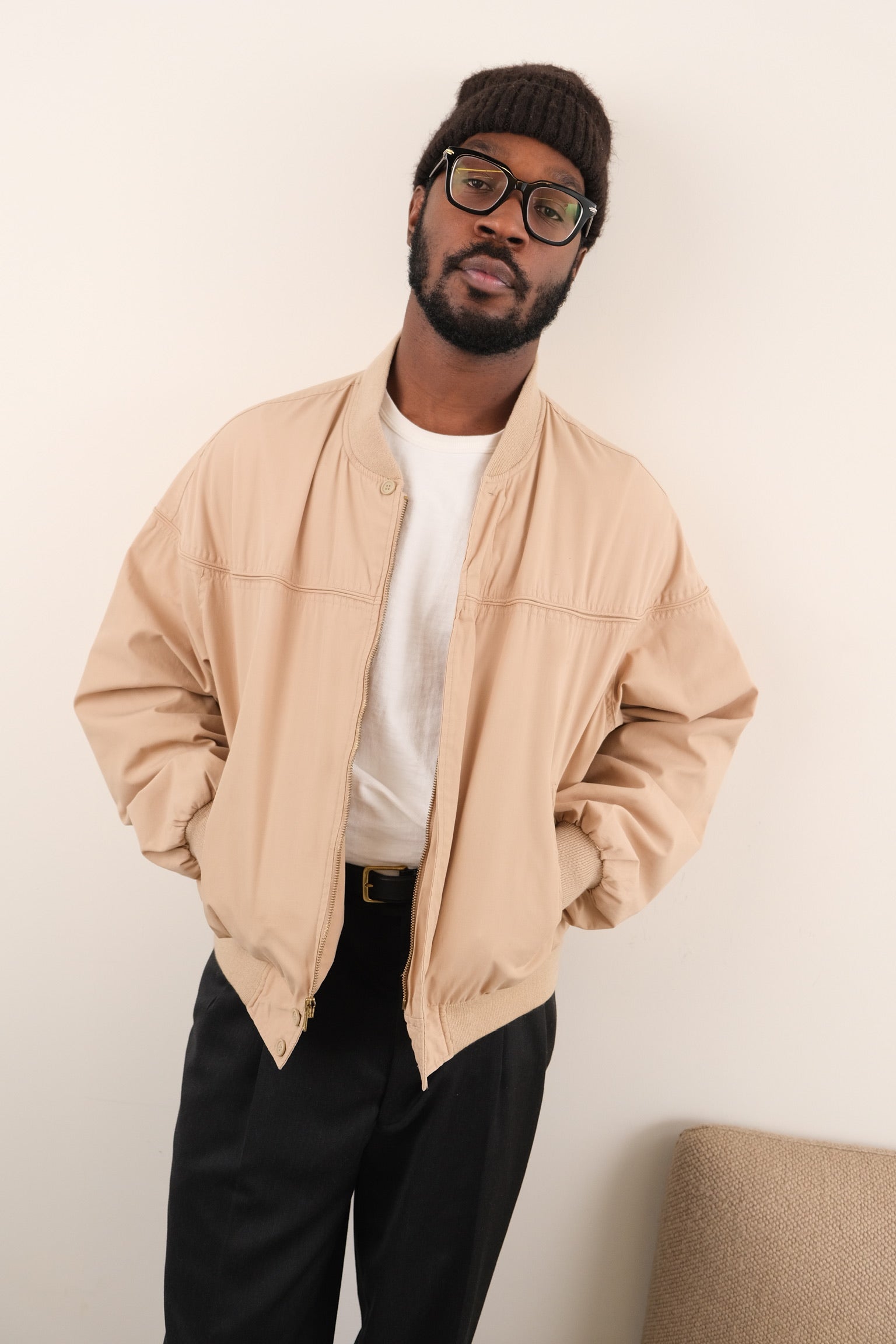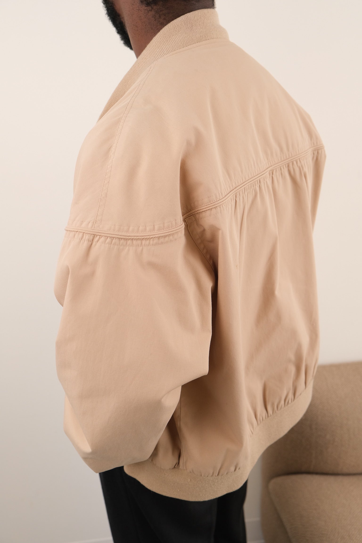 Vintage 80s Latte Cotton Blend Bomber Jacket