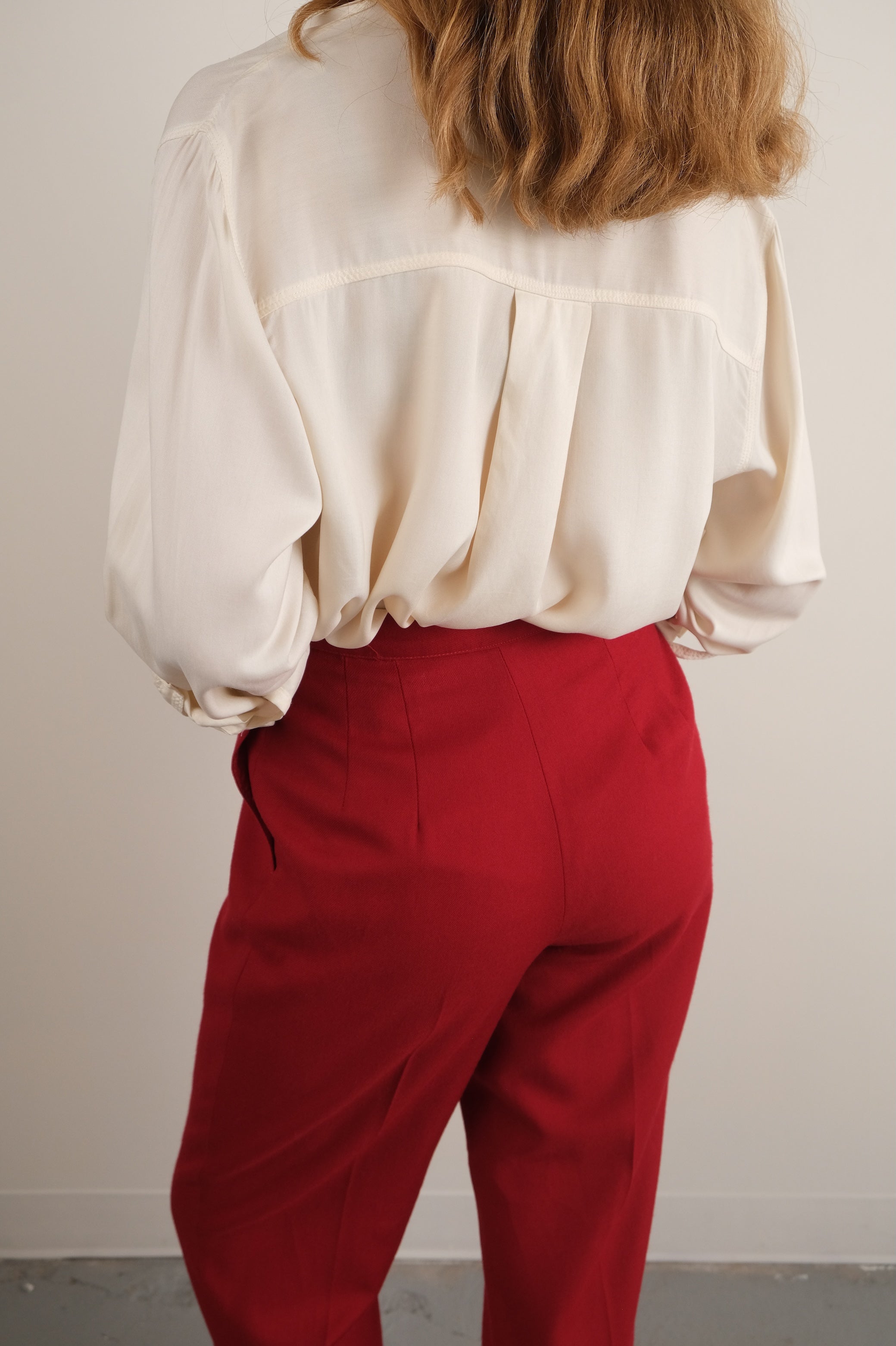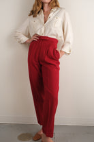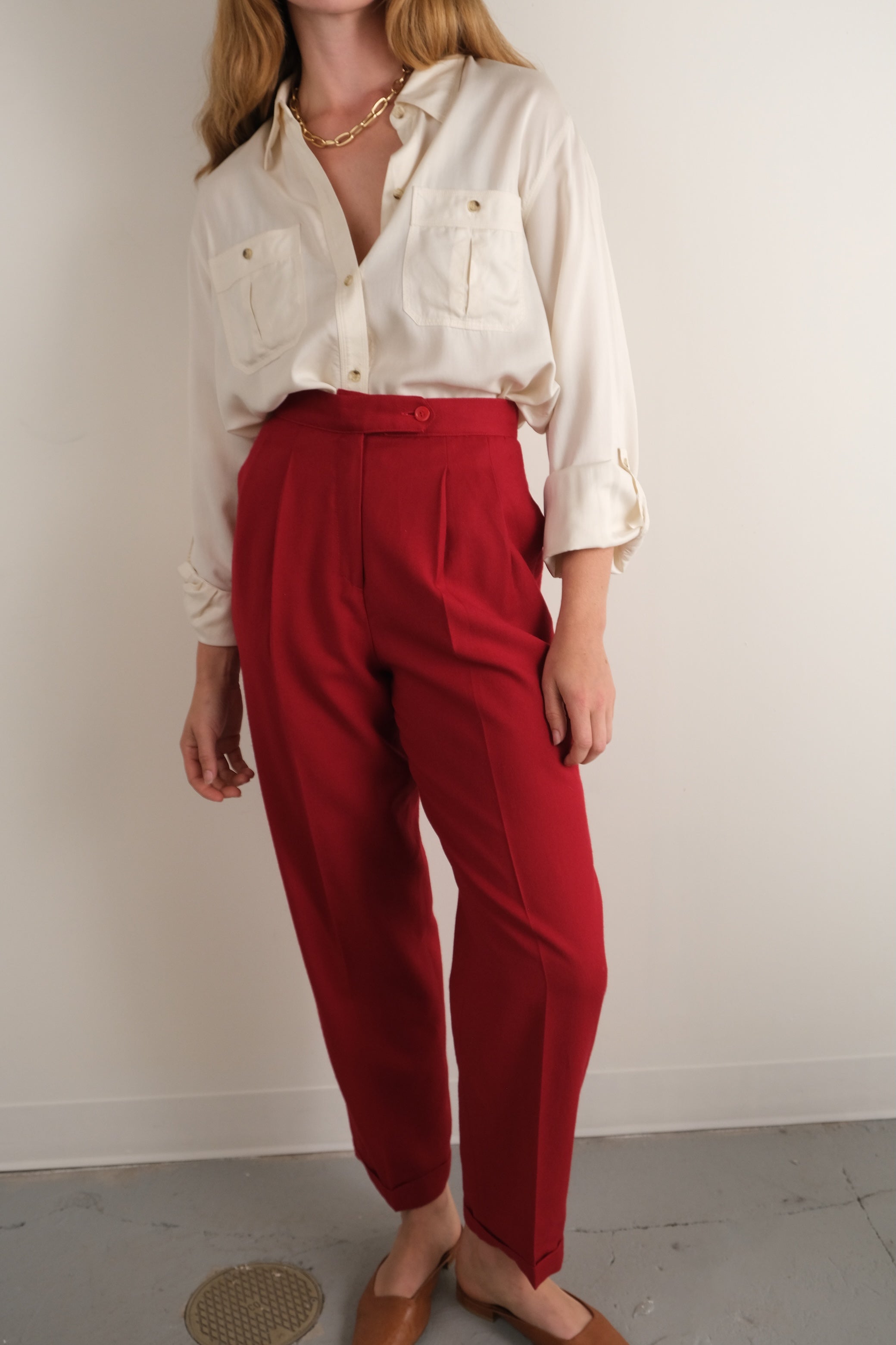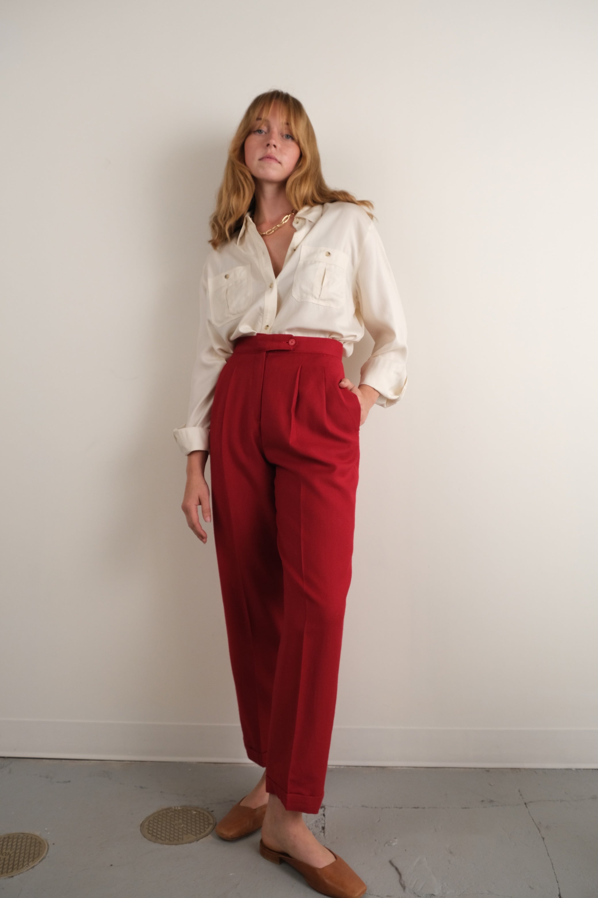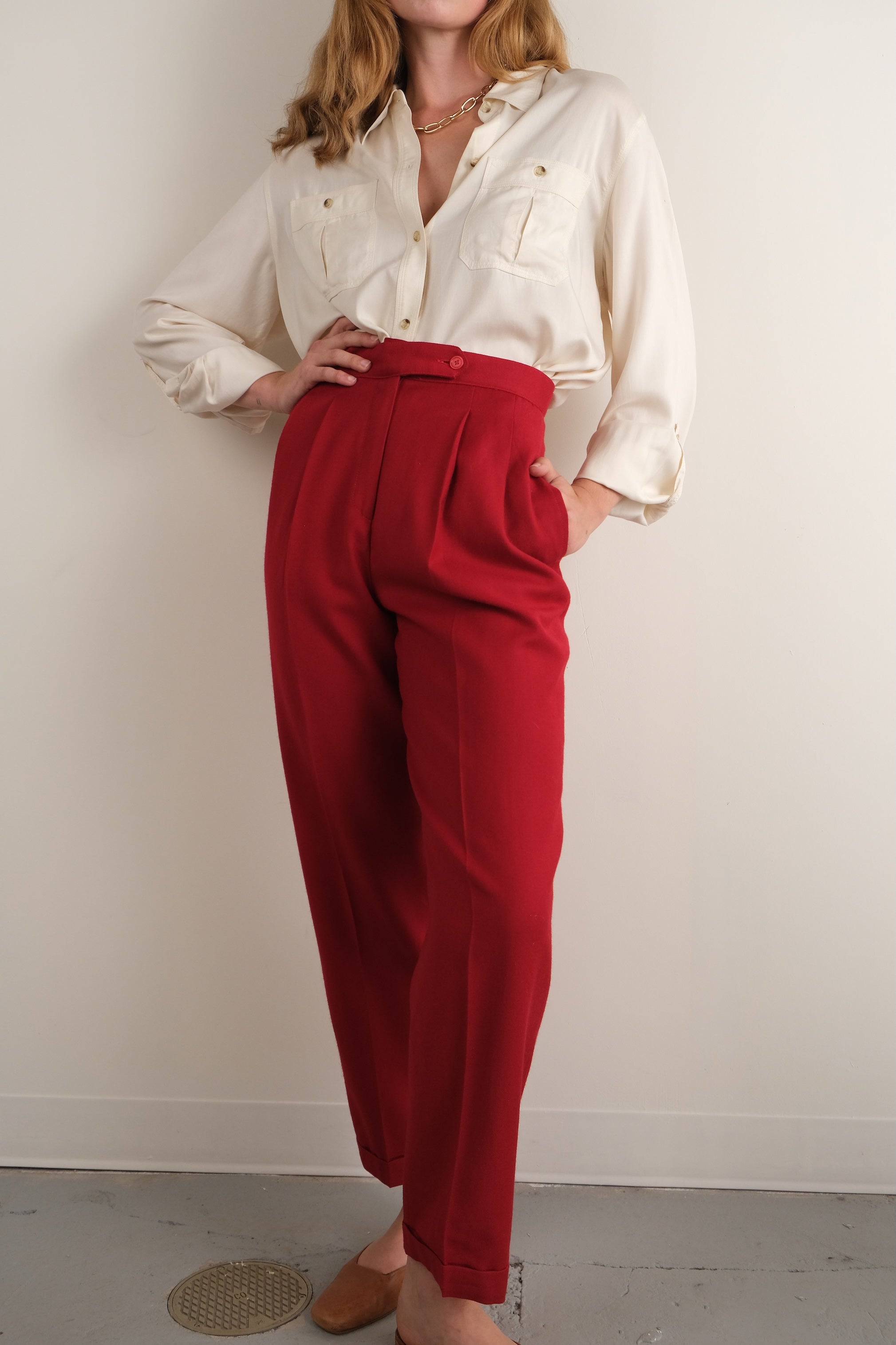 Vintage 80s Vermilion Wool Pleated Cuffed Trousers
