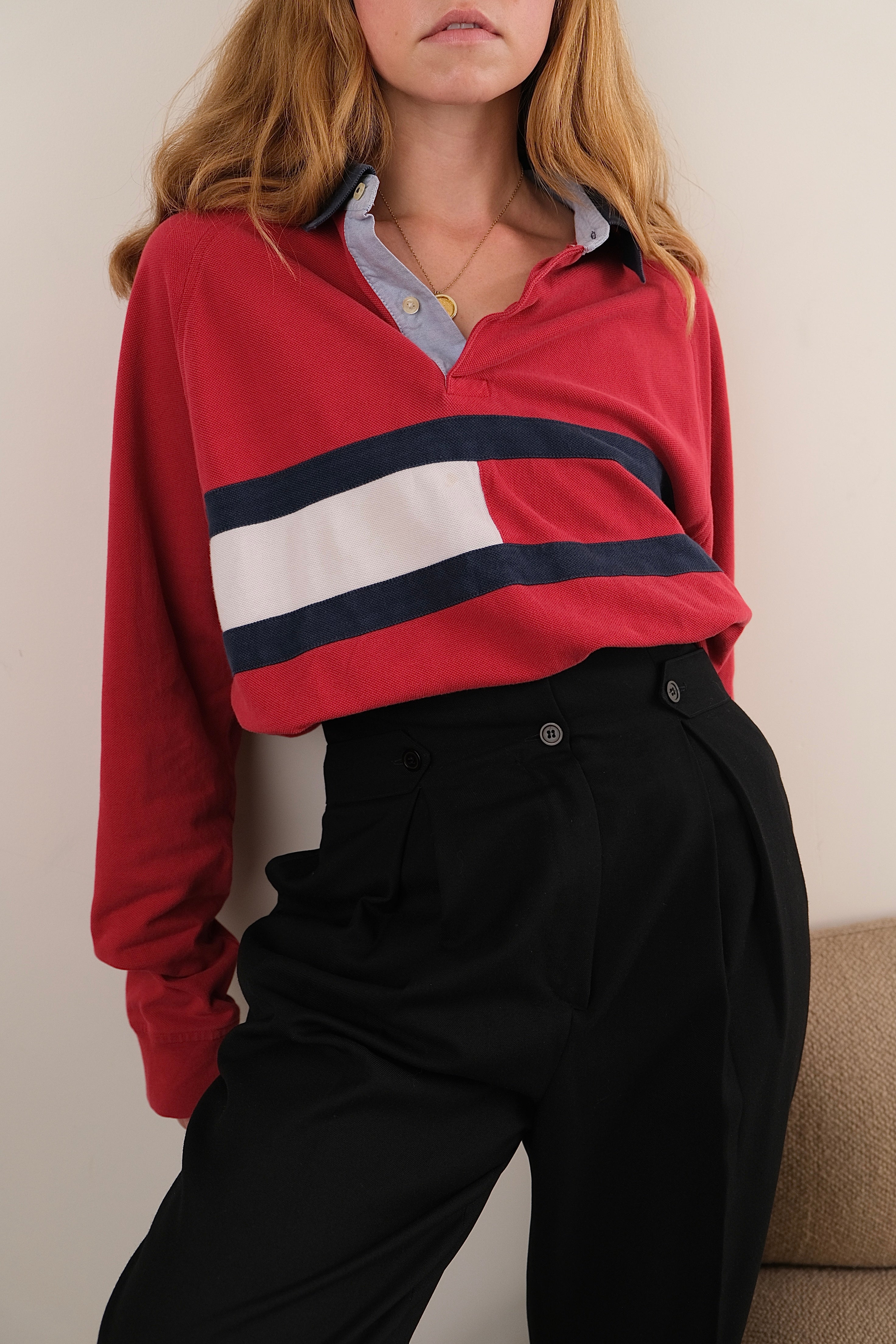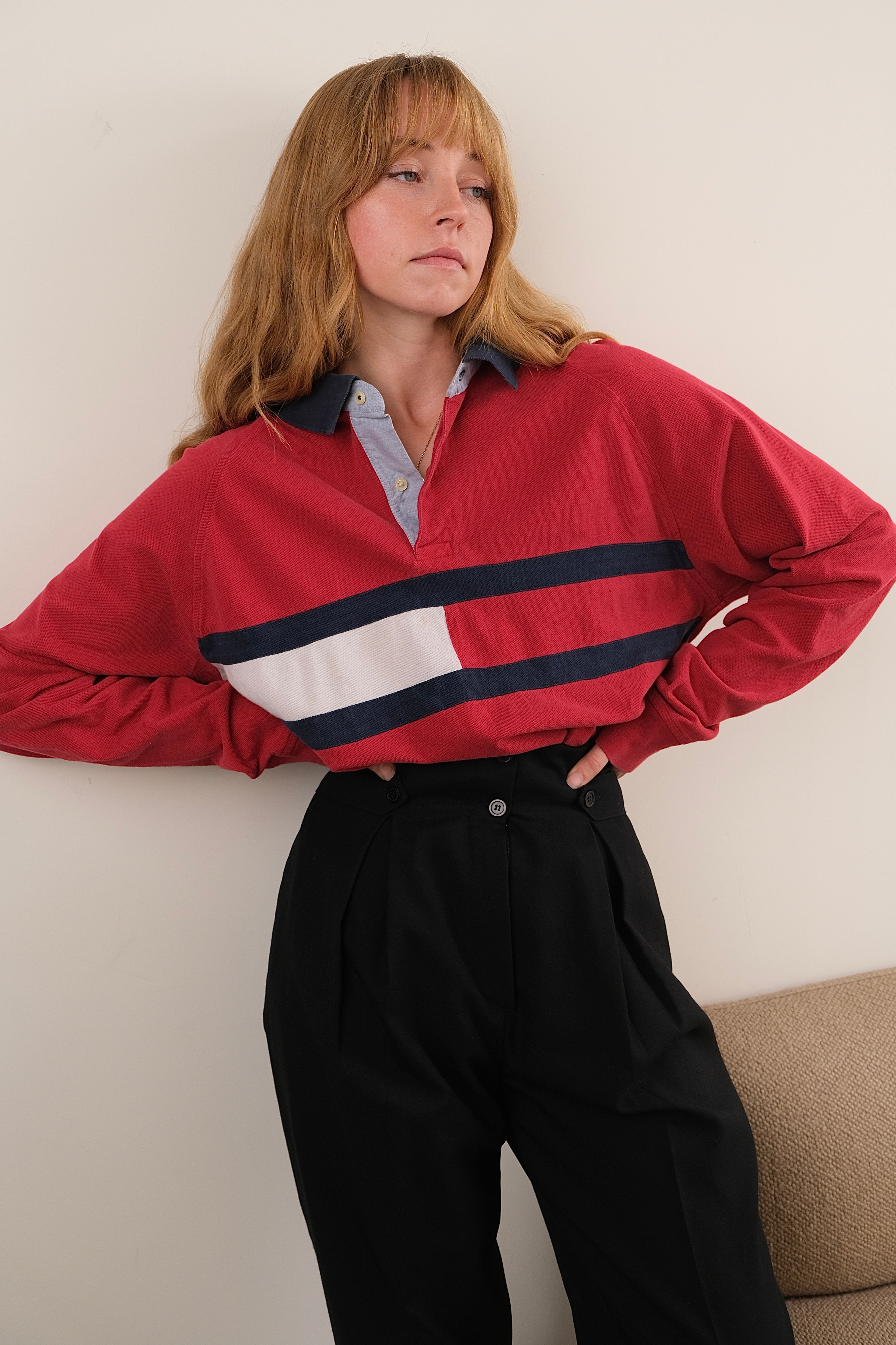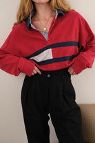 Vintage 90s Cherry Tommy Hilfiger Cotton Long Sleeve Rugby Shirt