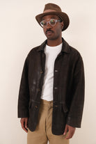 Vintage 90s Dark Umber Leather Button Up Jacket