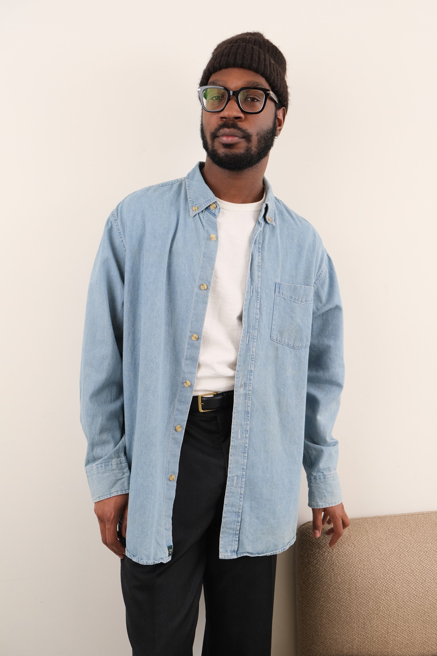 Vintage 90s Light Wash Cotton Long Sleeve Button Down Shirt