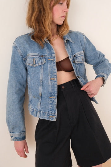 Vintage 90s Light Wash Cropped Denim Jacket