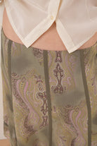 Vintage Sage Silk Paisley Midi Skirt