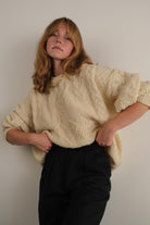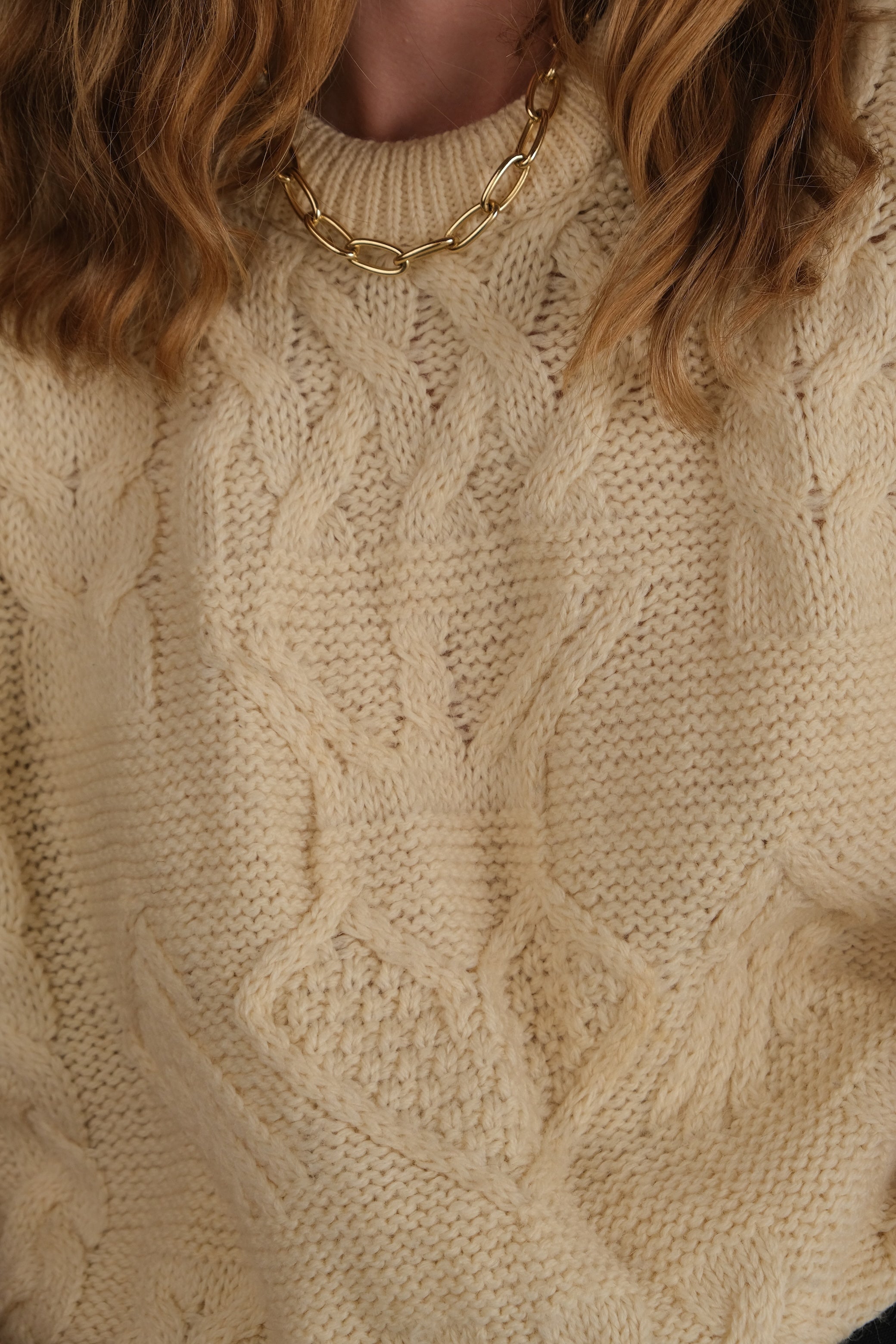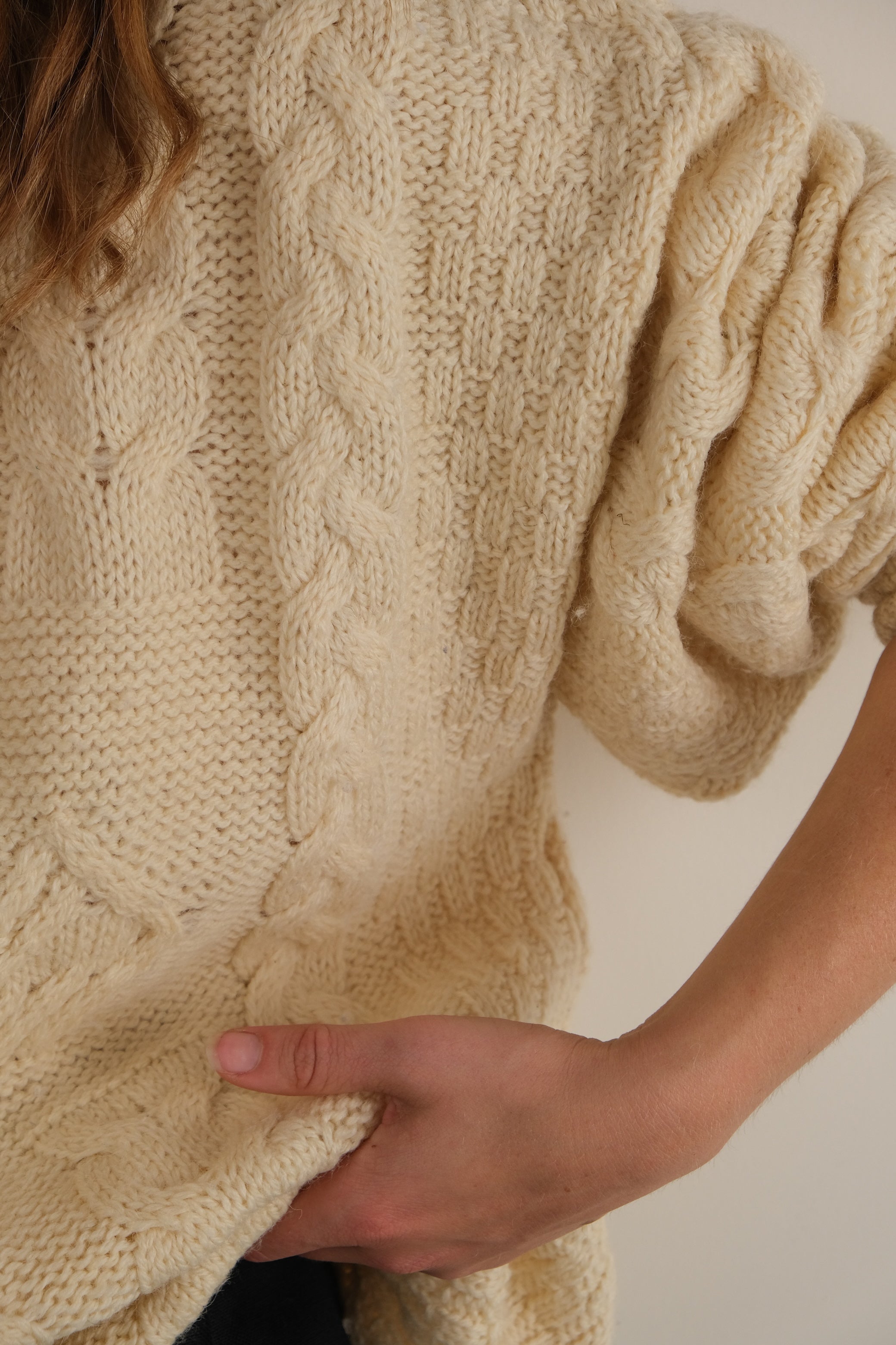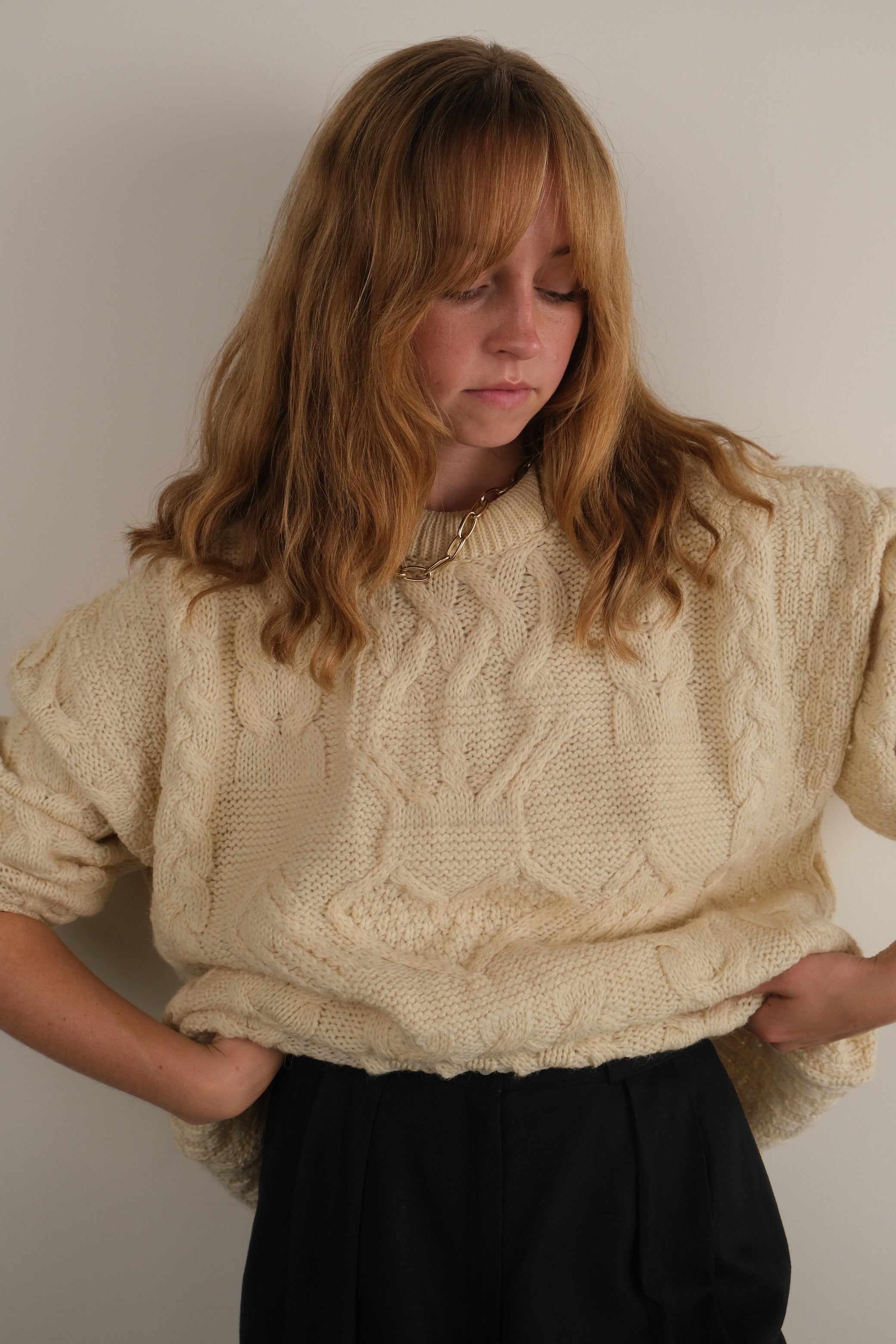 Vintage 90s Irish Parchment Wool Cable Knit Sweater
