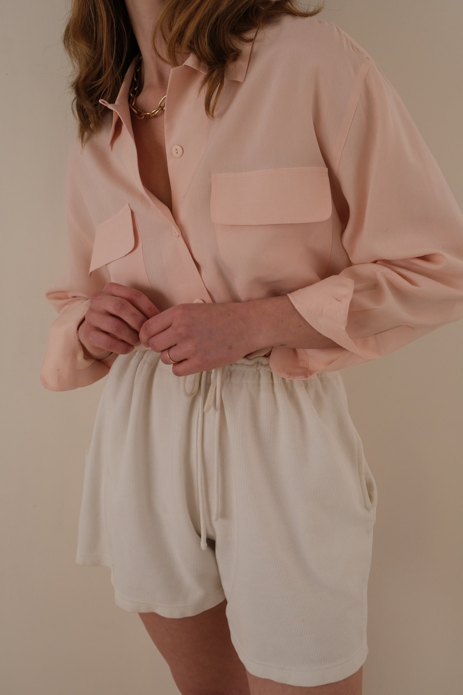 Vintage 90s Blush Silk Button Up Blouse