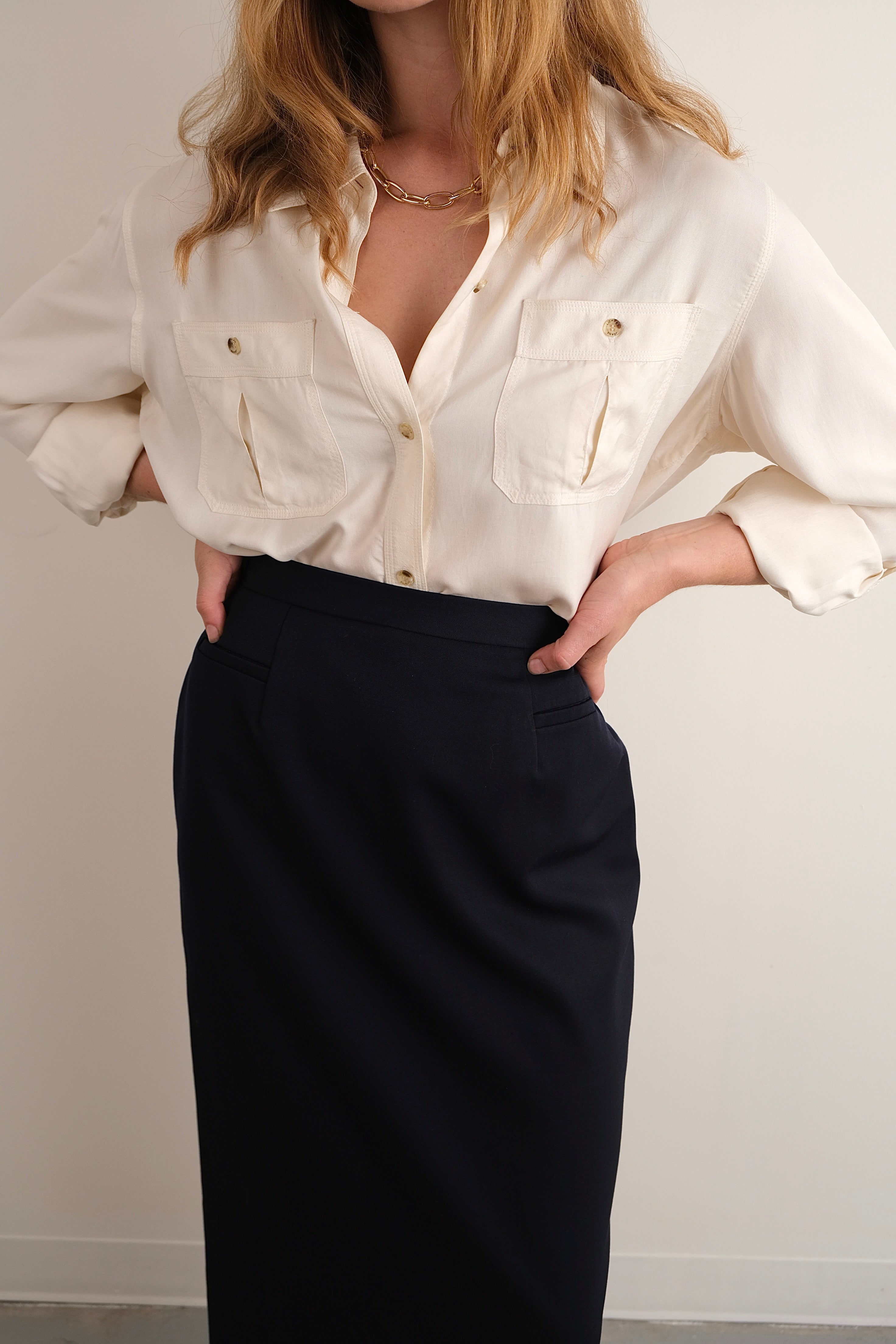 Vintage 90s Japanese Midnight Wool Column Skirt