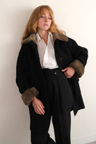 Vintage 80s Charcoal Wool Blend Shearling Collar Coat