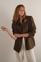 Softly structured in a wool blend, this jacket presents a textured hand with a warm yet breathable weight. Designed in a classic houndstooth check of olive, burgundy, and navy, it features a pointed collar, full front zip with a ball-chain pull, and long sleeves. The interior is fully lined in smooth polyester for comfort, while gentle tailoring at the waist lends a flattering, slightly fitted shape. A versatile layering piece that carries both polish and ease.